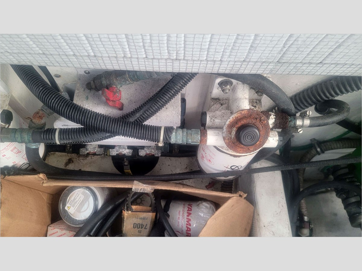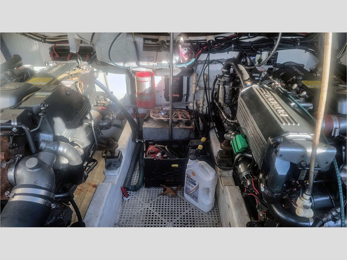 While the starboard engine needs replacement, the owner has already made efforts to rebuild it, offering a solid foundation for engine replacement. There is also a noticeable scratch on the starboard mid-ship, just below the rub rail.