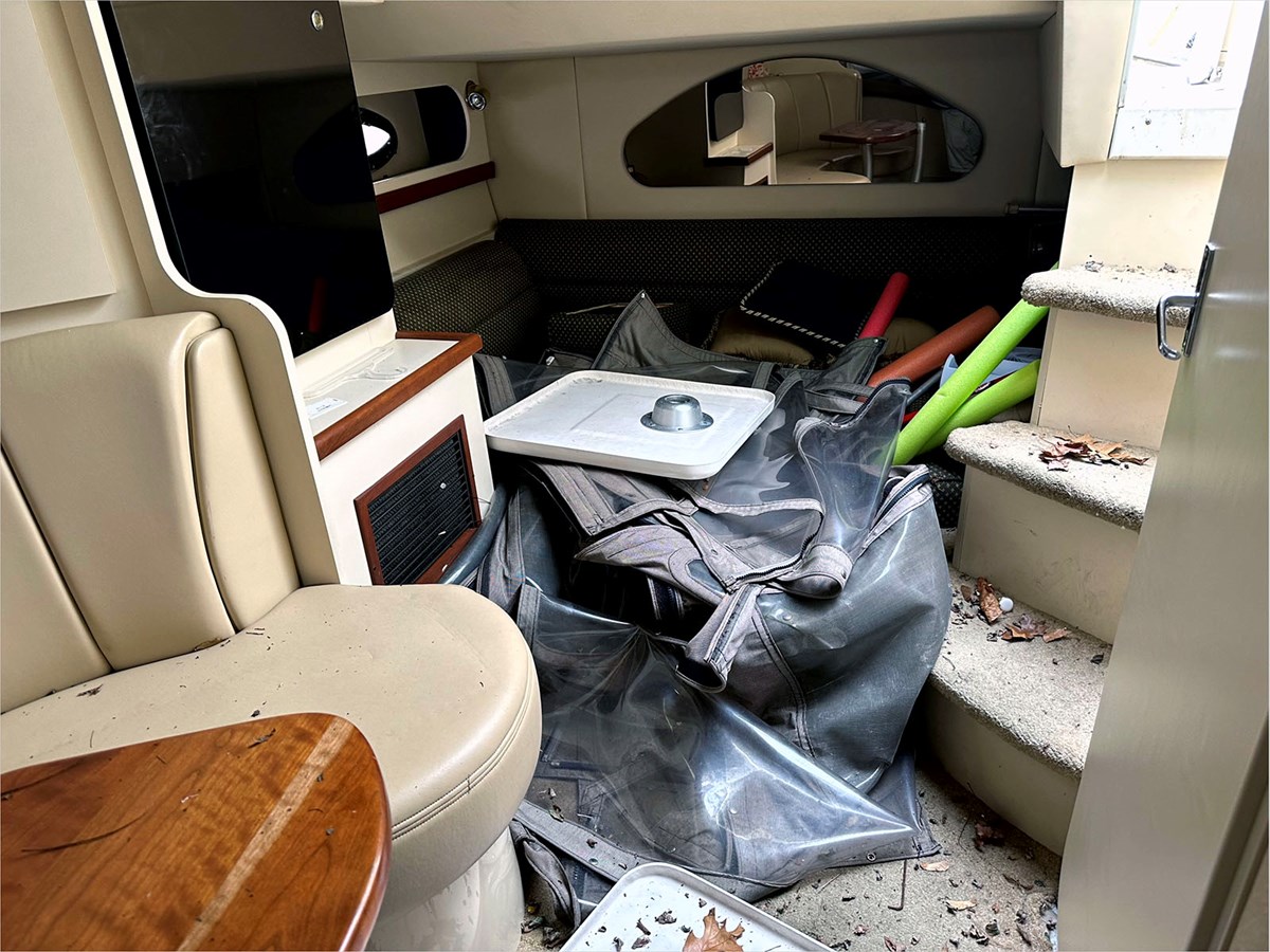 While it may require some fiberglass work due to a suspected collision in the water, it's worth noting that there's minimal visual water damage, as there's no water line evidence in the cabin. The owner asserts that the engines are operational; however, the props may require replacement or professional repair. We invite you to inspect the vessel and assess it as you like to make your best offer. Don't miss out on this chance to make it your own!