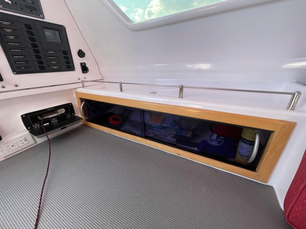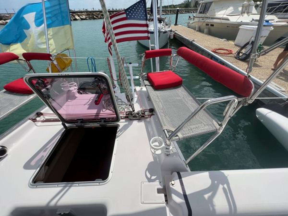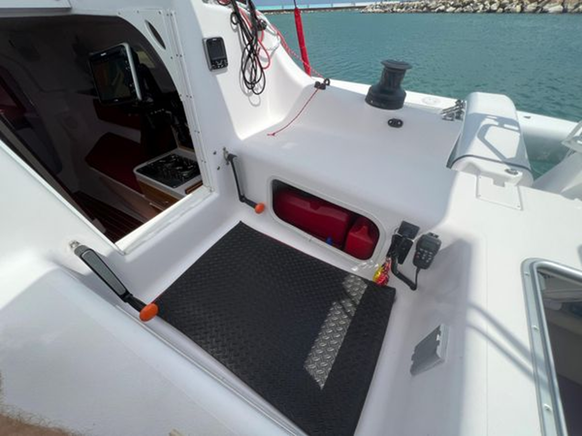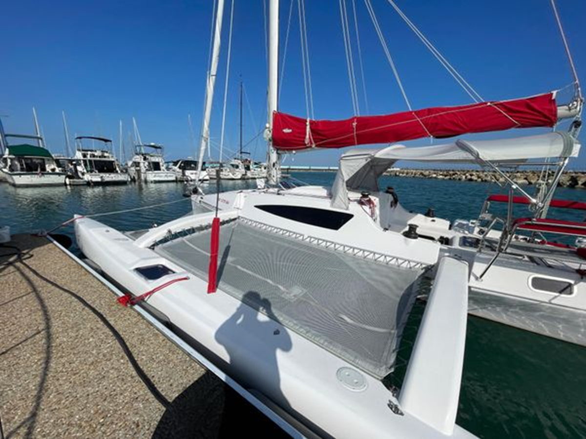 Known as the "Swiss Army Knife" of trimarans, ready for cruising, racing, or passage making. A powerful sail plan with a light weight, stable platform provides jaw dropping performance in an easy to sail package.