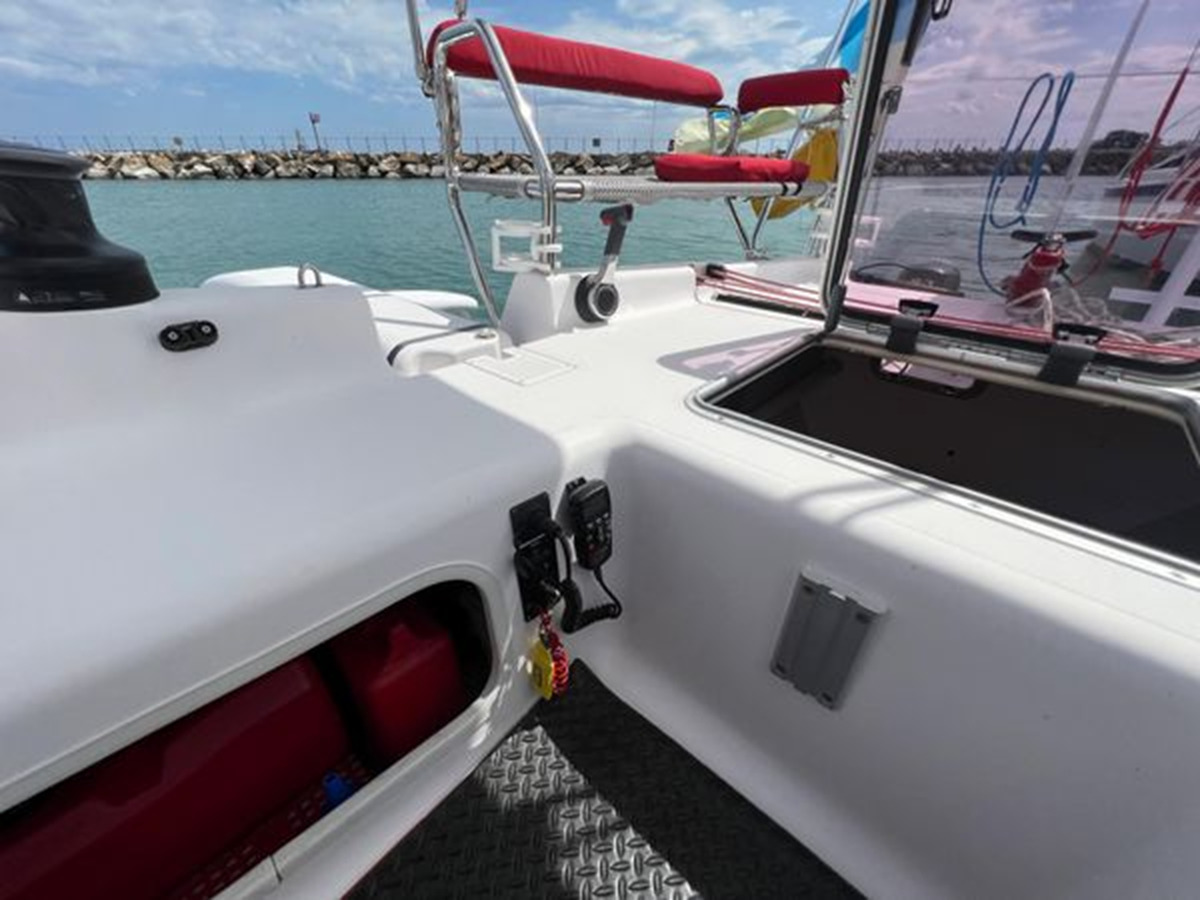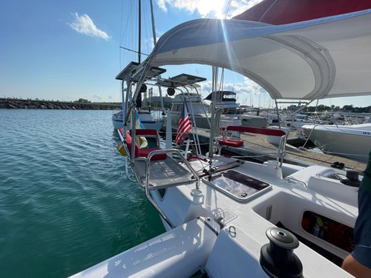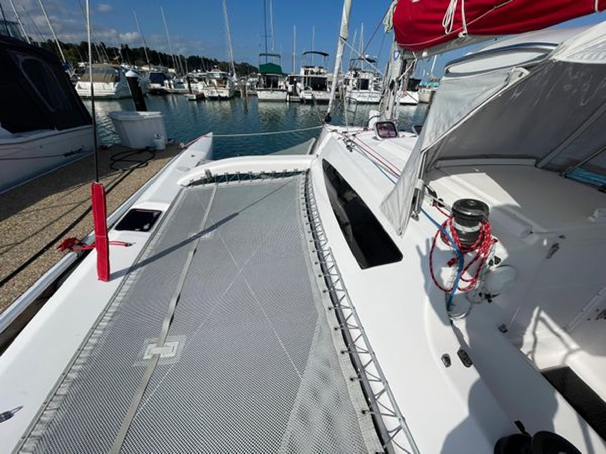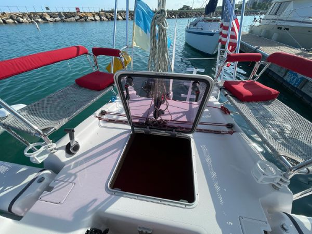 Known as the "Swiss Army Knife" of trimarans, ready for cruising, racing, or passage making. A powerful sail plan with a light weight, stable platform provides jaw dropping performance in an easy to sail package.