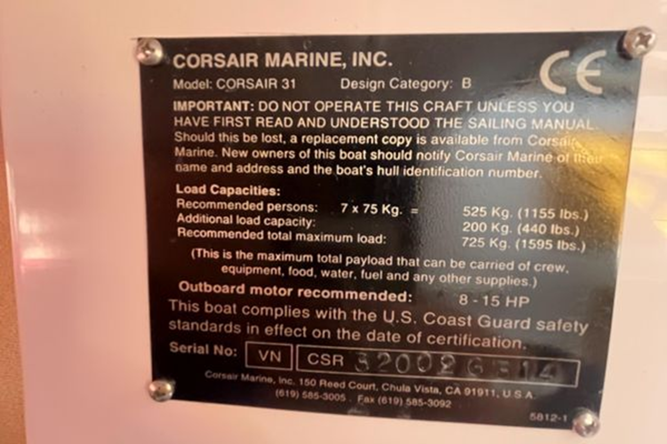Designer: Corsair Marine (based on the C31 originally drawn by Ian Farrier) Builder: Corsair Marine, Int'l. Build Location: Ho Chi Minh City, Vietnam