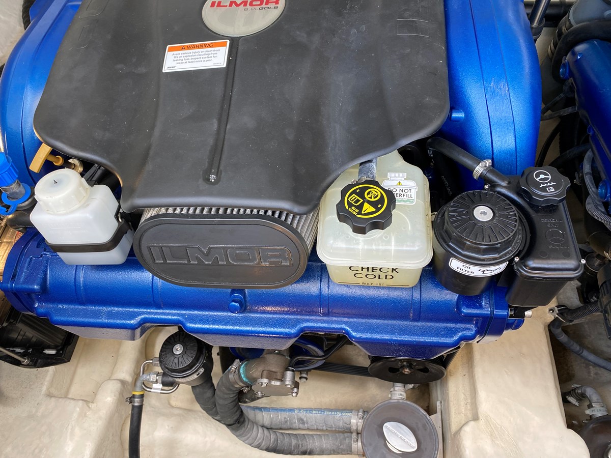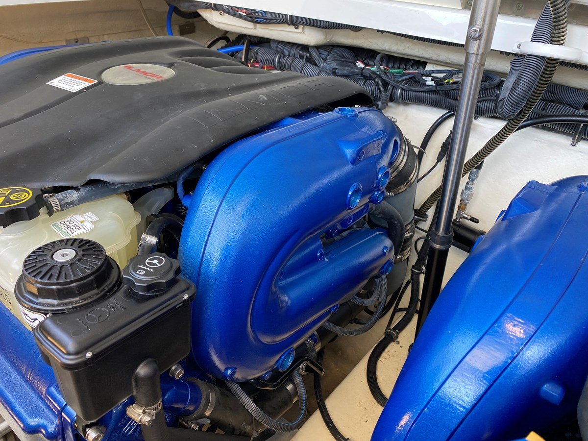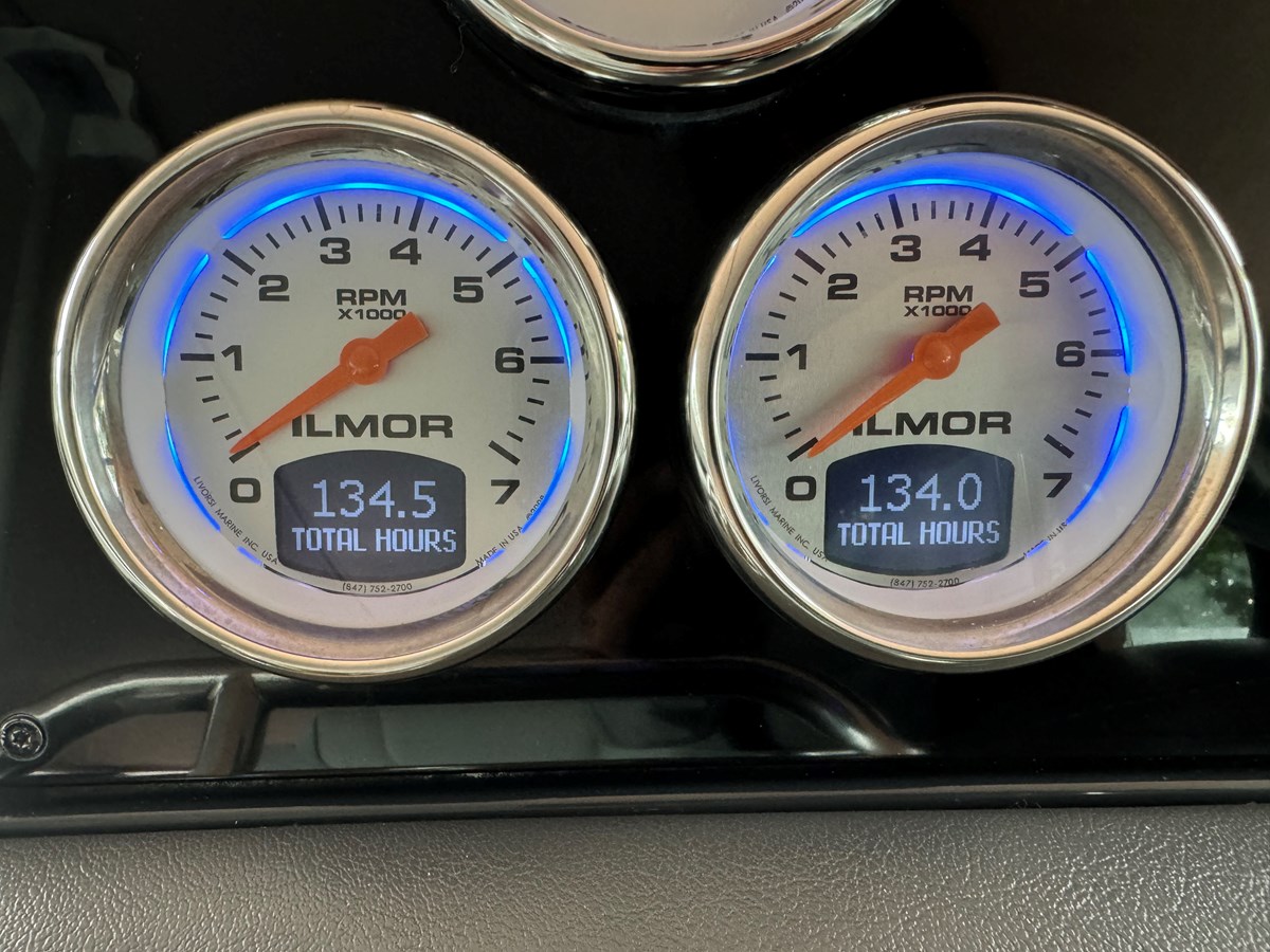 This 2021 Formula 310 Bowrider, powered by twin Ilmor 6.2L GDI-S OPS engines delivering a combined 860 HP, offers top speeds up to 59 mph with smooth handling thanks to its Ilmor One-Drive system which includes the ergonomic Joystick and a Merlin view digital dash. The boat features a spacious 9’6” beam, with modular seating in the cockpit and bow, and luxury amenities like a Corian-topped wet bar and a helm mounted Rockford Fosgate stereo with JL audio speakers. The helm is equipped with a Raymarine Axiom Pro 9 S chart plotter and a wireless charging pad, ensuring modern functionality. Entertainment and comfort are further enhanced by an optional fiberglass hardtop, power SureShade, and extended swim platform. With impeccable attention to detail, this vessel combines opulent luxury with superior performance.