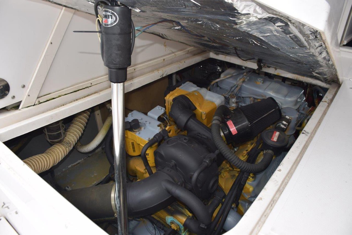 The marlin tower has a full operation helm and is open to one side for easy access plus a bench seat. Cockpit has two underdeck fish boxes and has been plumbed for on-deck live bait well. There is a fighting chair, a walk-through transom door/gate, and underwater lights. This is a lot of boat for this asking price.