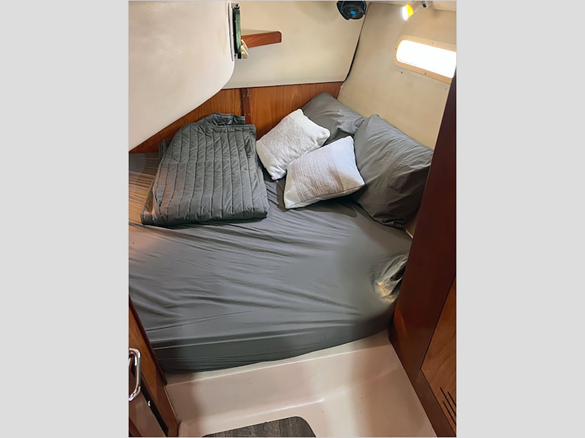The 2000 Hunter 340 is a popular coastal cruiser prized for its innovative design and spacious accommodations that rival many 36-foot vessels. It features an open, uncluttered cockpit. Below deck, the salon offers an impressive space and natural light, and two private staterooms, including an exceptionally large full-beam aft cabin.