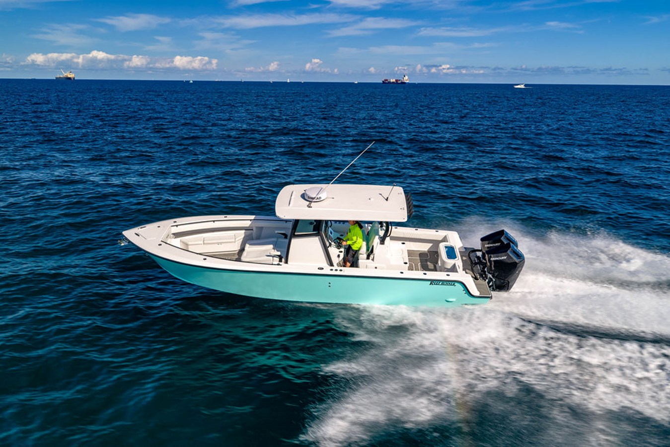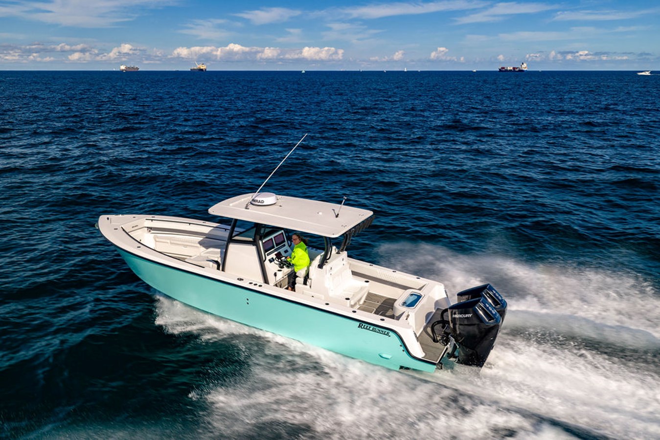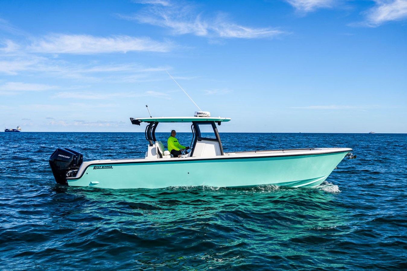 Meet the Reef Runner 340 Series—where serious offshore capability is paired with refined comfort and smart design. As the flagship model in the lineup, this 34-foot center console is built for boaters who want uncompromising performance without giving up luxury. Featuring a wide-open cockpit, high-end finishes, and a smooth, confident ride through challenging conditions, the 340 is designed for hardcore fishing days and memorable time on the water alike.