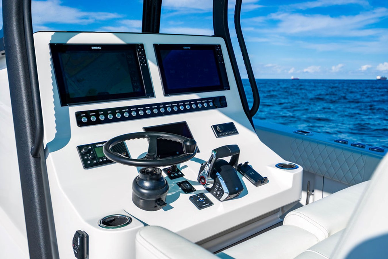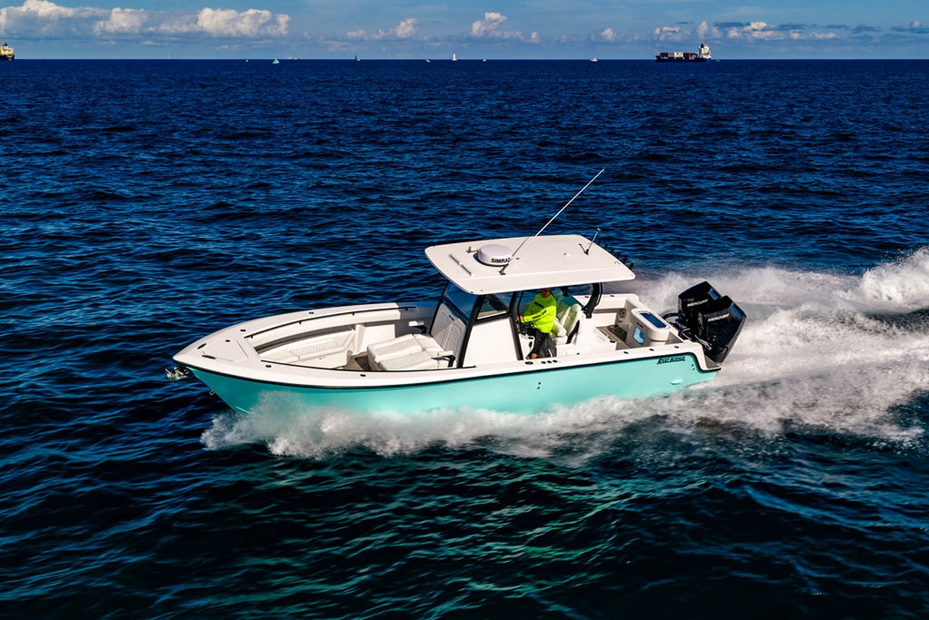 The Reef Runner 340 Series center console represents the pinnacle of offshore fishing capability, seamlessly combined with exceptional comfort and innovative design. Built for serious anglers and discerning boaters who demand superior performance, this flagship 34-foot vessel delivers a smooth, confident ride in challenging conditions while providing a spacious cockpit and premium features ideal for extended days on the water.