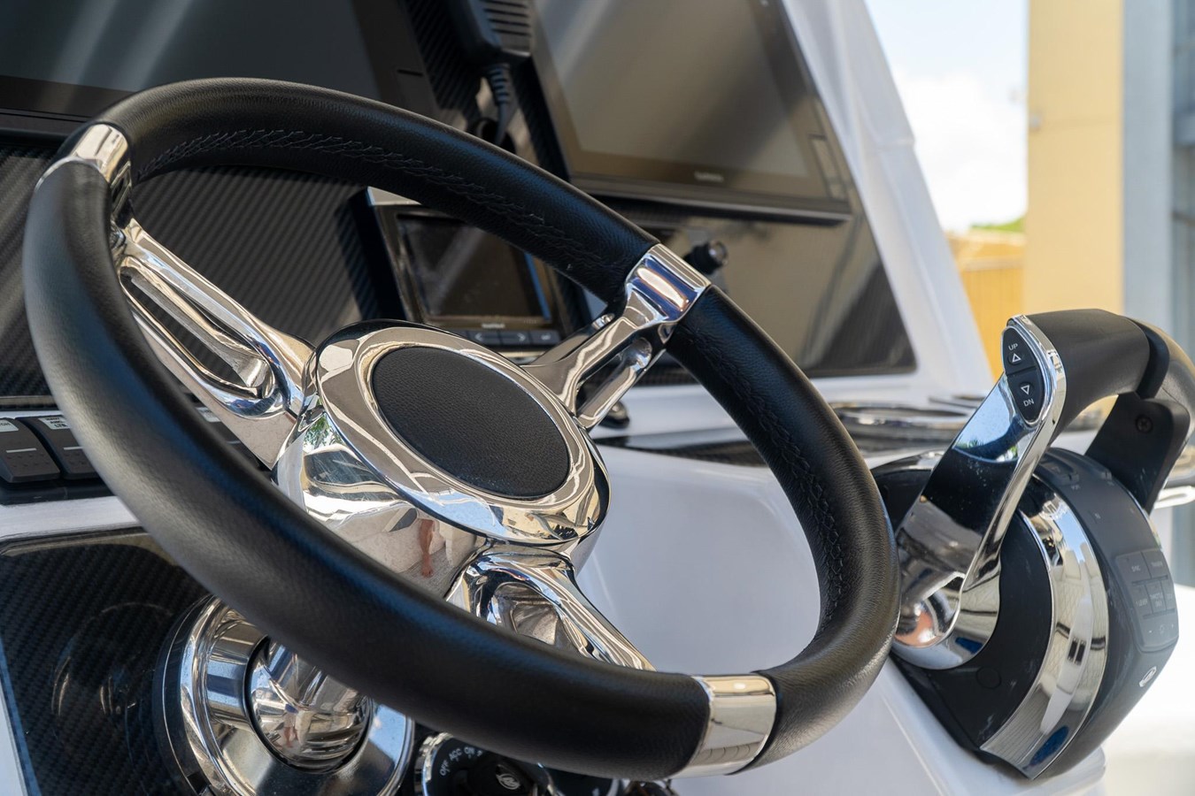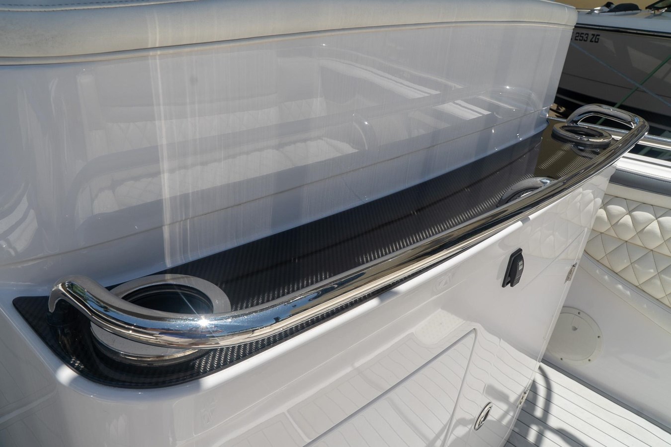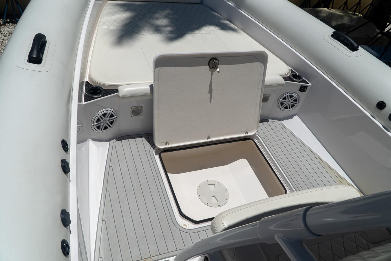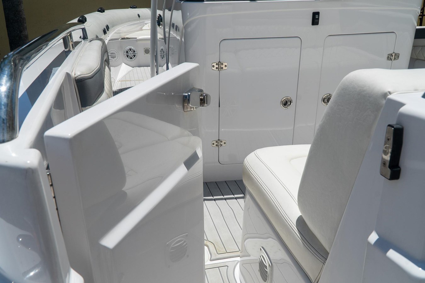 POWDER COATED T-TOP. DASH ELECTRIC REMOTE BATTERY SWITCHES. (4) JL AUDIO SPEAKERS (1) JL AUDIOSUB AND (1) JL AUDIO AMP. GARMIN TRANSDUCER. 2x GARMIN 7612. GARMIN RADAR DOME. GARMIN VHF RADIO. MERCURY VESSEL VIEW 4. GARMIN IN HULL TRANSDUCER. FRESH WATER TANK AND TRANSOM SHOWER. FWD STORAGE LOCKER. FULL BOAT COVER.