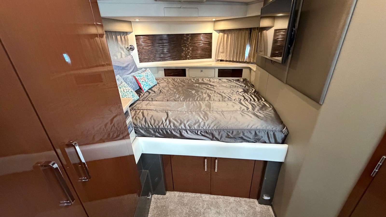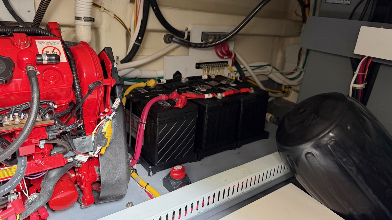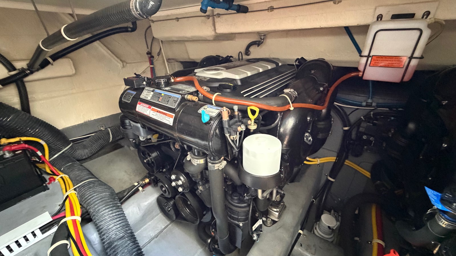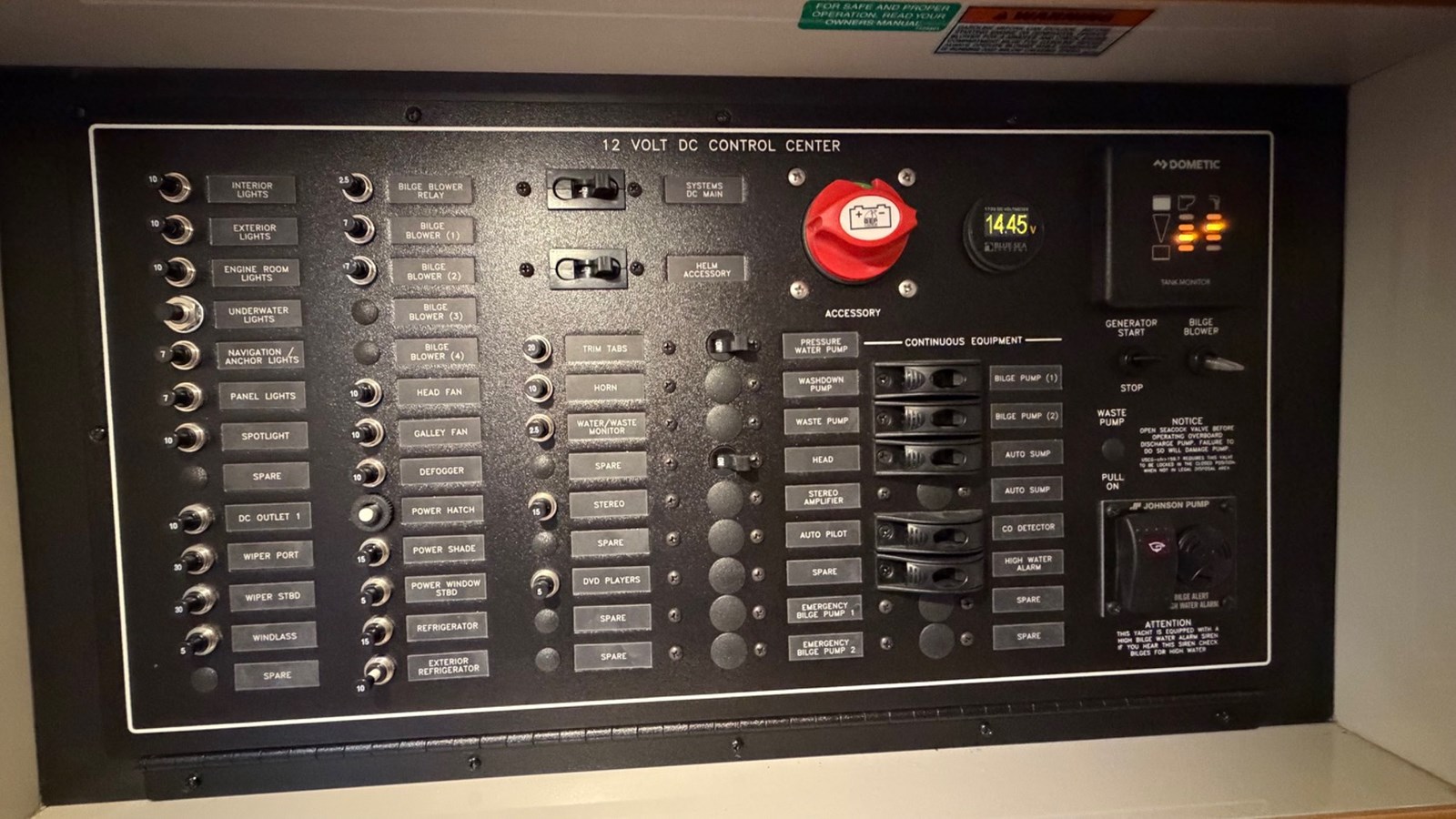 The boat’s systems are clean, organized, and well laid-out, with both the AC and DC distribution panels looking factory-fresh. This is the rare combination of luxury, sport performance, and sensible layout that Carver is known for.