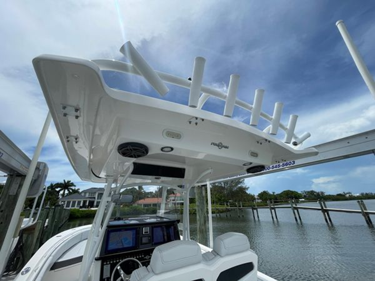 • T-Top - Heavy-Duty Fiberglass w/Radio & Electronics Box, Rod Holders (7), Courtesy Lights (2) & Halogen Lights (2)