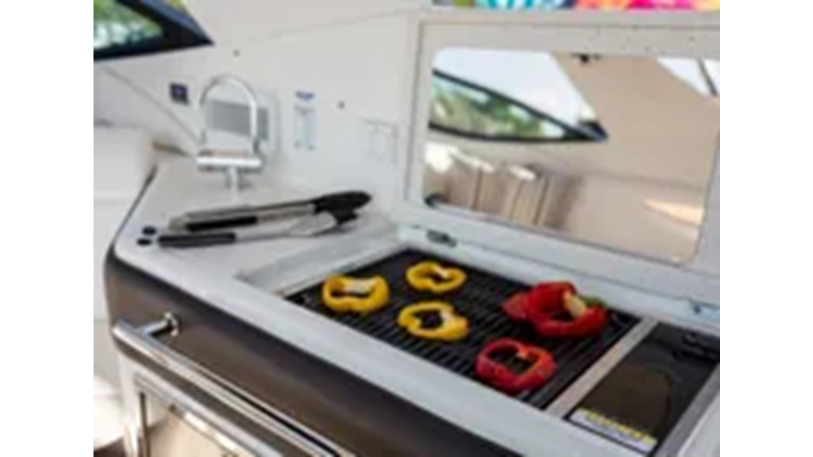 Bow walk-through door, hinged