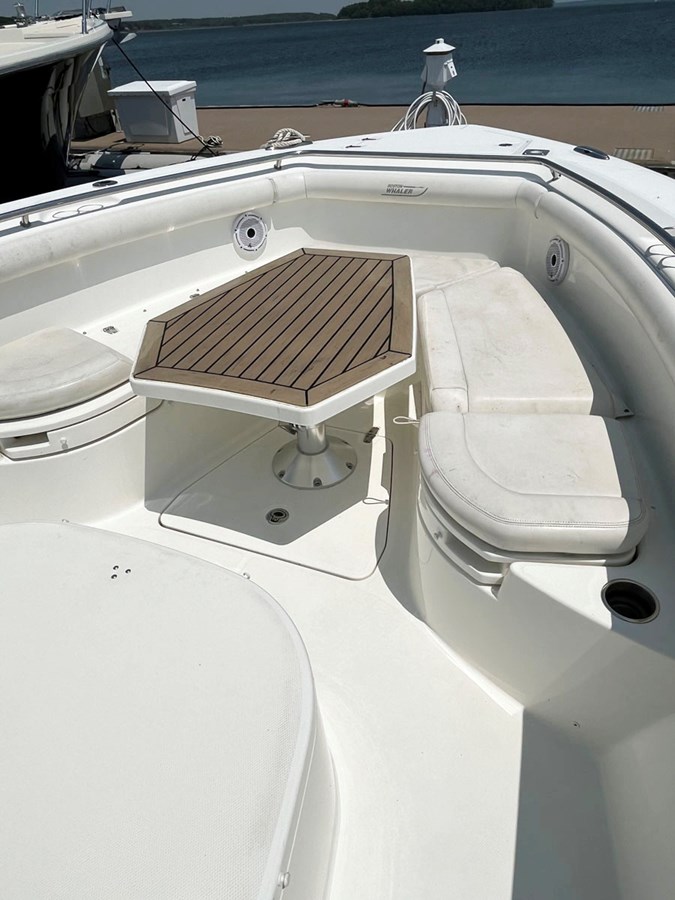 The Boston Whaler Outrage 350 is a powerful and functional fishing machine loaded with thoughtful features. It also doubles as a great family boat with enclosed head and shower, plenty of seating forward and aft, and swim/dive door.