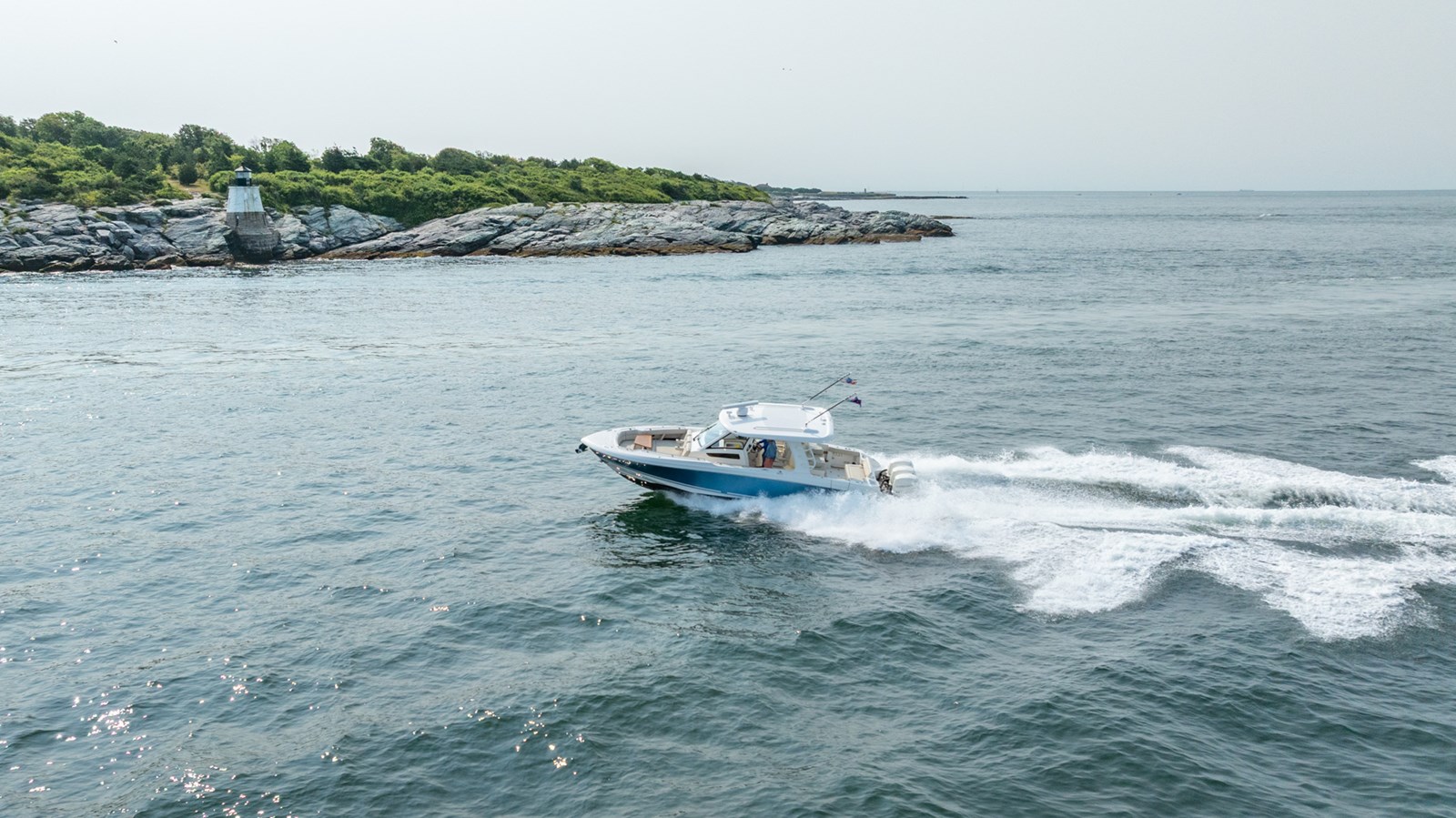 Yacht for sale is a 2019 BOSTON WHALER 35' "BLUE SKIES" 350 EX Realm Motor Yacht in Bristol, Rhode Island, USA.