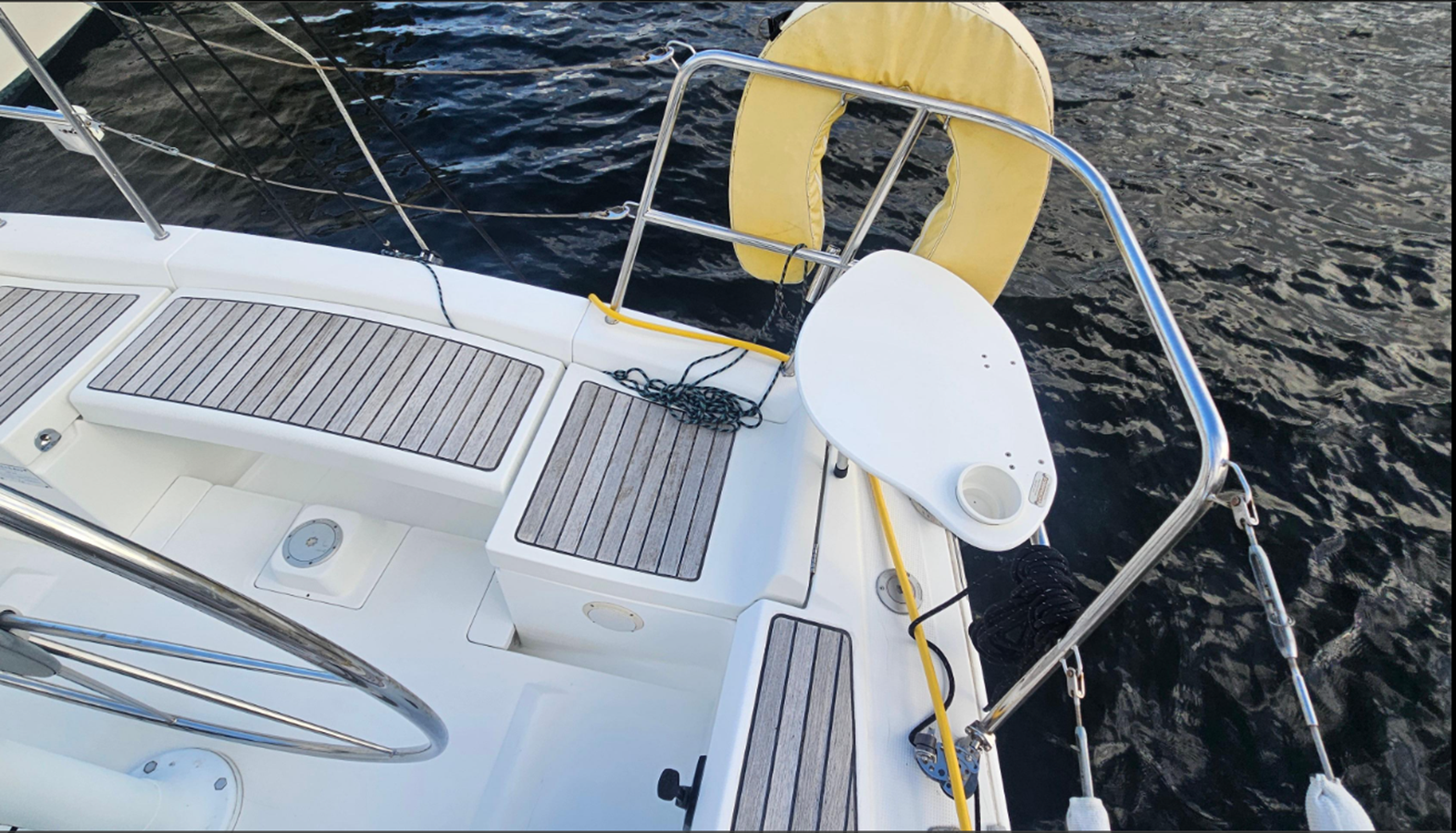 - Teak cockpit seating (select areas)