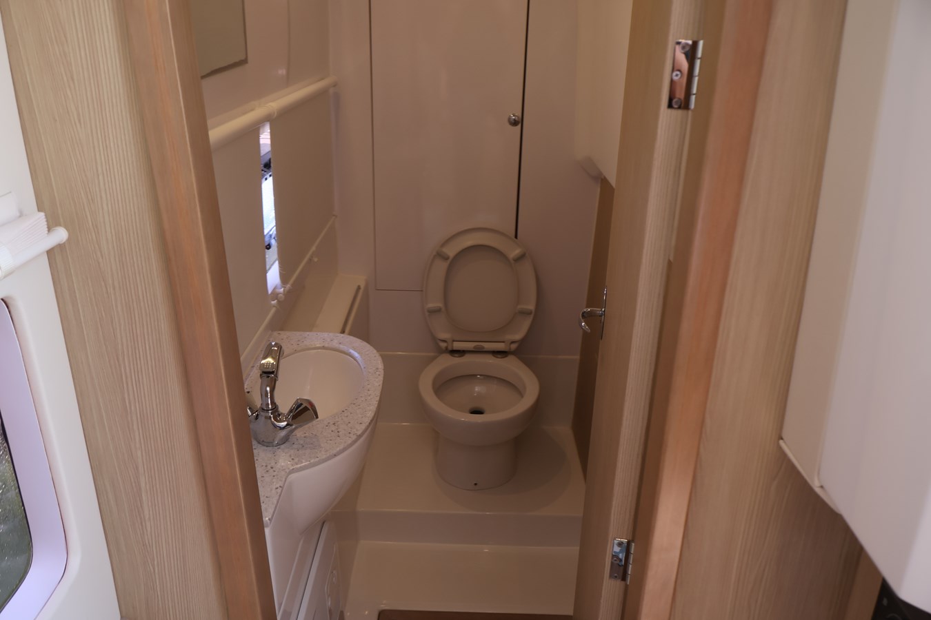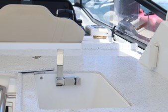 - Galley to starboard with Corian surface, 80 L/2.8 c ft fridge/freezer, storage, wash basin