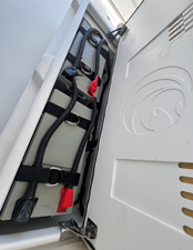 - Side boarding doors port and starboard with heavy duty hardware
