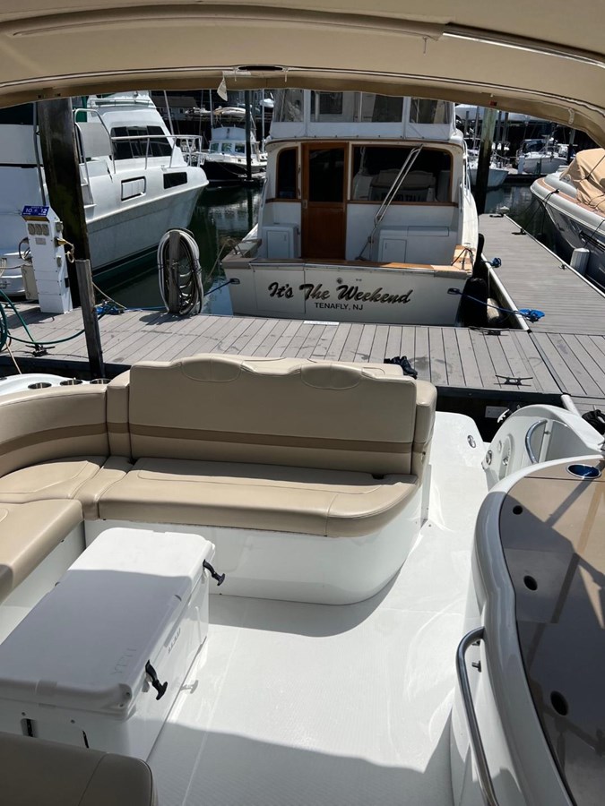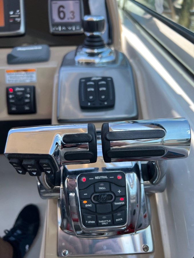 This boat is loaded with Mercury Joystick docking control, Mercury Axius, Raymarine 12" GPS, Generator, A/C with reverse cycle heat, Tommy Bahama cabin décor, full galley, full head, cockpit refrigerator with wet bar, cabin TV, hot water heater, windlass anchor w/ wash down, transom shower and much more!