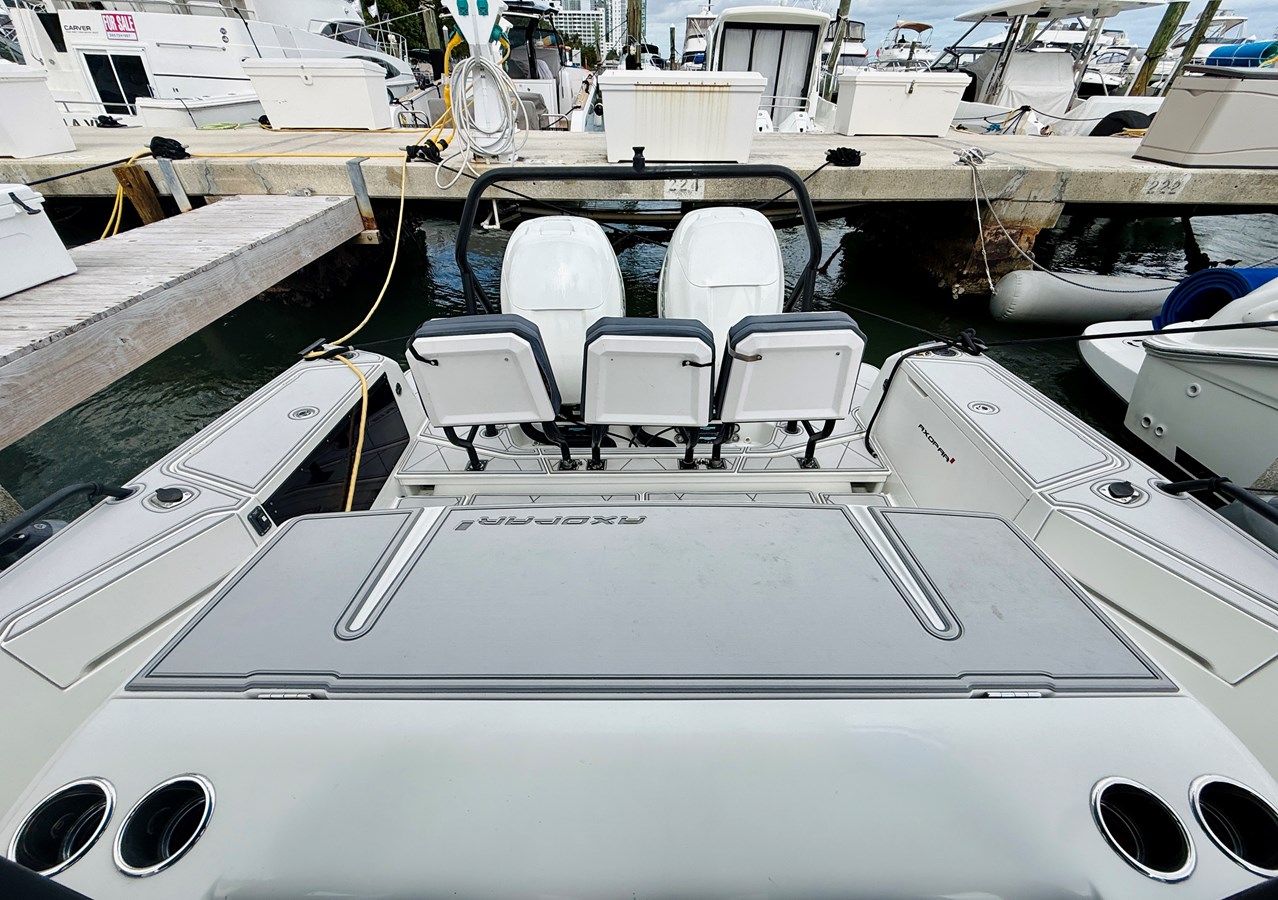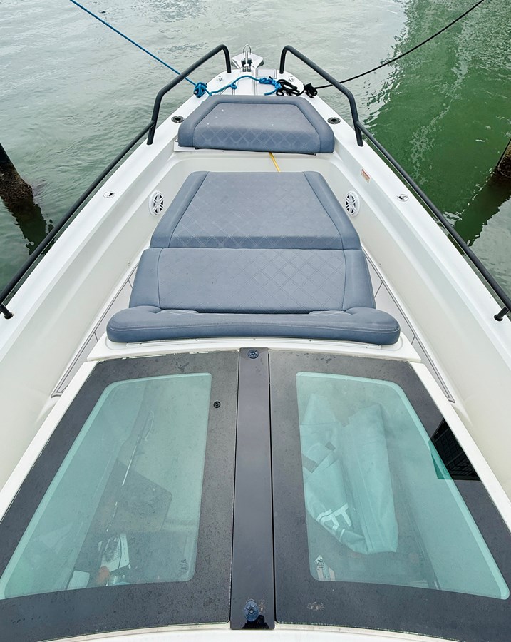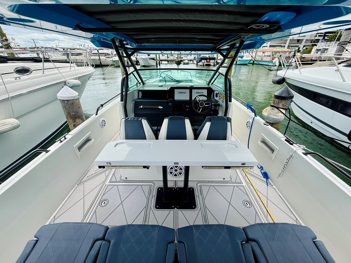 Launched in 2016, the Axopar 37 Sun Top was quickly recognized as a top contender in its class combining performance, style, and comfort in a very versatile platform. Whether entertaining family and friends, enjoying water sports activities, or having a formal sit down dinner, the 37 Sun Top checks all the boxes. With a glass windshield and extended hardtop, the 37 Sun Top offers excellent protection from the elements. By opening the large sliding canvas sunroof you can enjoy sunshine throughout the helm and cockpit areas. The spacious fore deck is a perfect place to socialize with family and friends with plenty of layout space. A large anchor box in the bow will hold the anchor, fenders, and lines easily as well as other equipment. The flush deck walk-around layout offers safe passageways for easy moving onboard, combined with reduced thresholds making life onboard functional and safe for everyone.