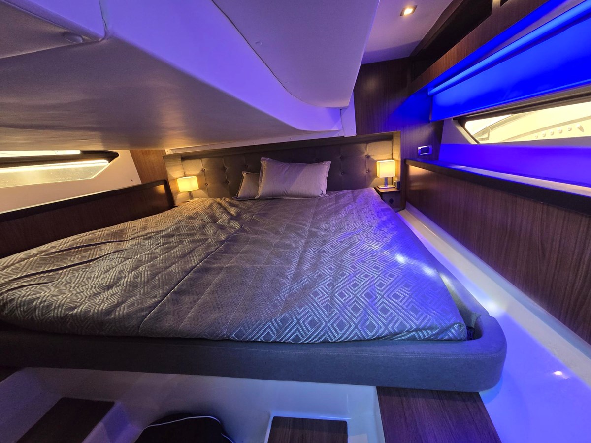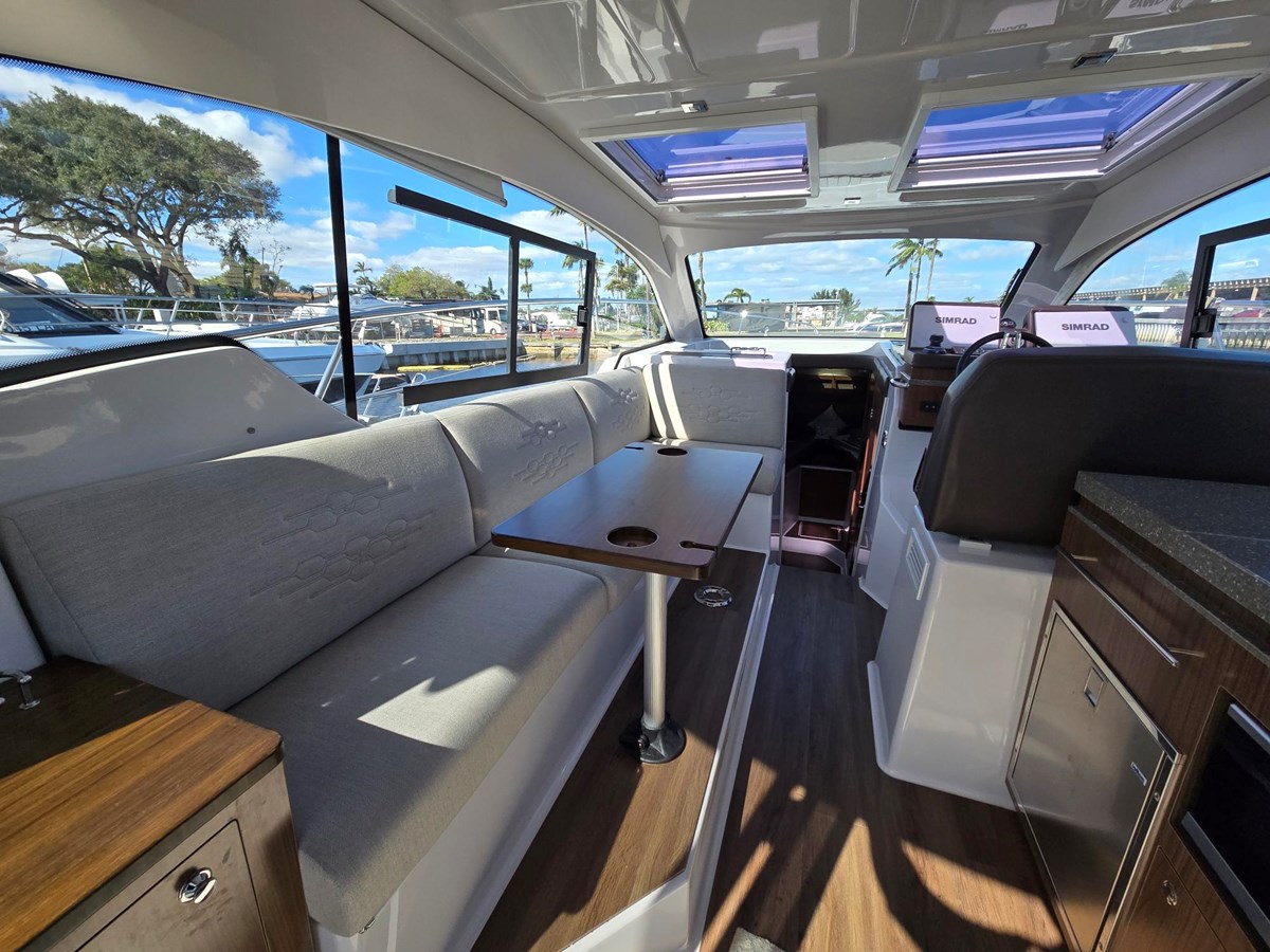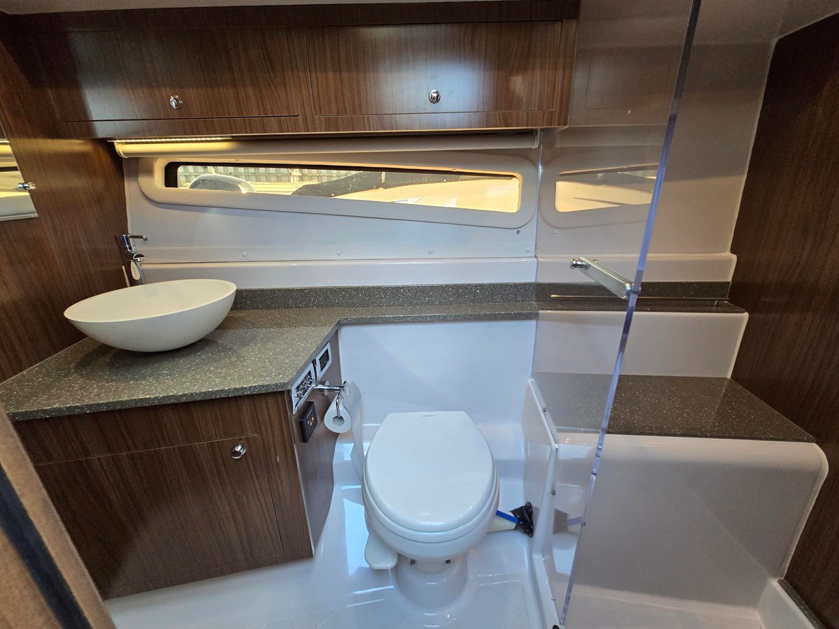 This stunning boat is a must see. Fully Loaded & like new , and the best priced unit on the market . Includes a SEAKEEPER GYRO STABILIZER (+$60k upgrade ), and joystick docking. The upgraded Mercury 350HP Verados are still under warranty (and are upgraded from the standard 350hp engine. 126 hrs The Auto Glide trim tabs provide added stabilization. Also included are the premium electronics package, sky lights, mat grey sea decking in cockpit, side decks, & fore deck. Fusion stereo system with 3 zones, 4 JL Audio Speakers Private stateroom forward, and private stateroom aft. Extremely spacious for 35,’ lots of volume. Great for the Escape and day trips, or you can sleep the whole family.