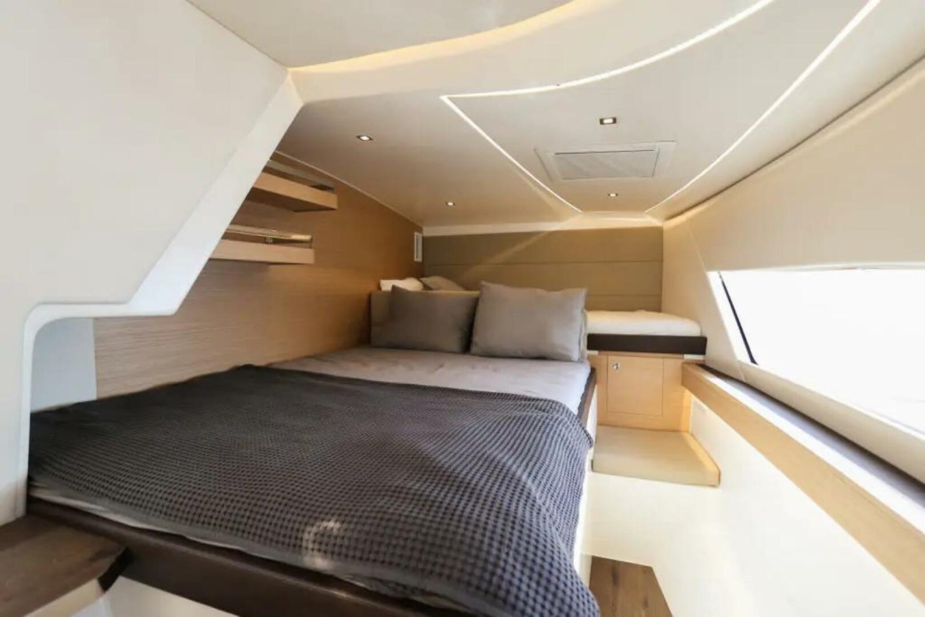 2 spacious private cabins with en-suite heads, separate showers and standing headroom throughout.