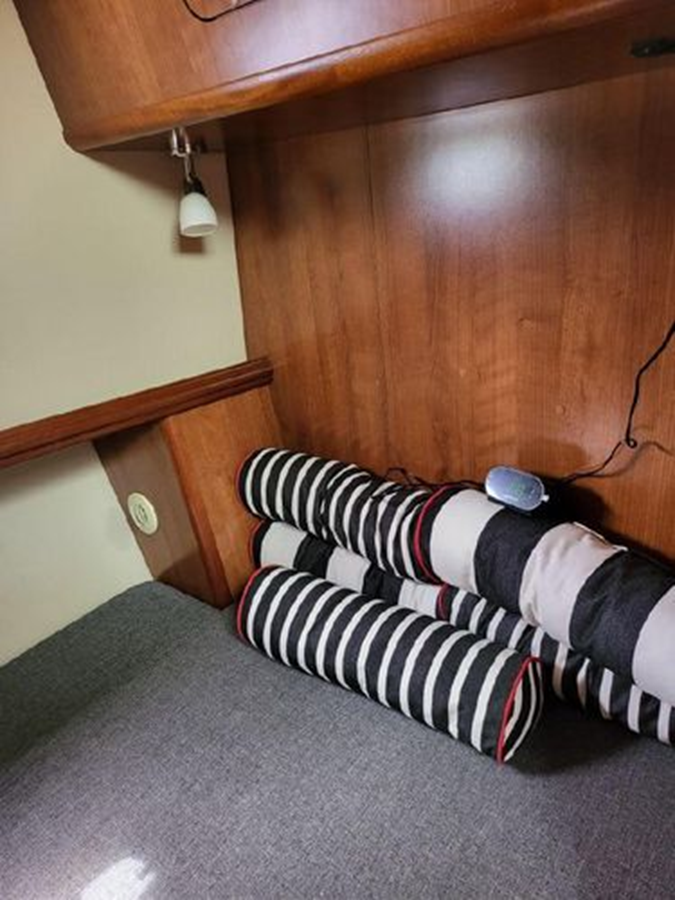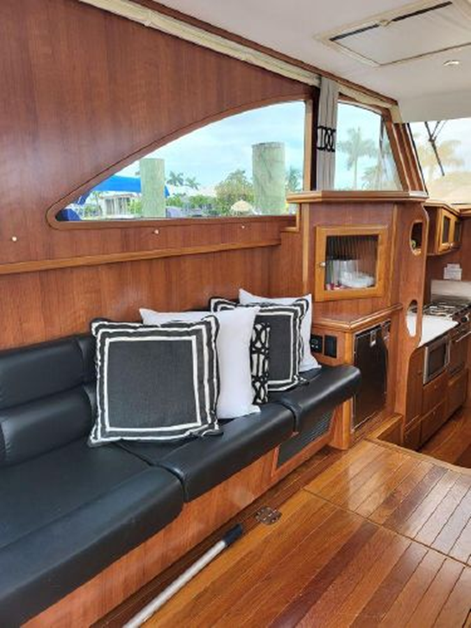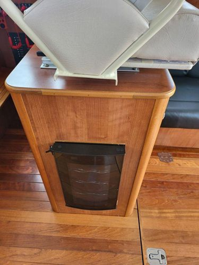 Her twin 220 Low Hours Deisel inboard Yanmars .Cruise her at 16 knots.Bow and stern thruster make her a breeze to dock. She has been completely serviced 2023 Including Oil,Filters,impellers and complete coolant flush. New Set of 6 AMG Batteries 2023..Extended Aft swim Platform. New Owner Need nothing except get on board.