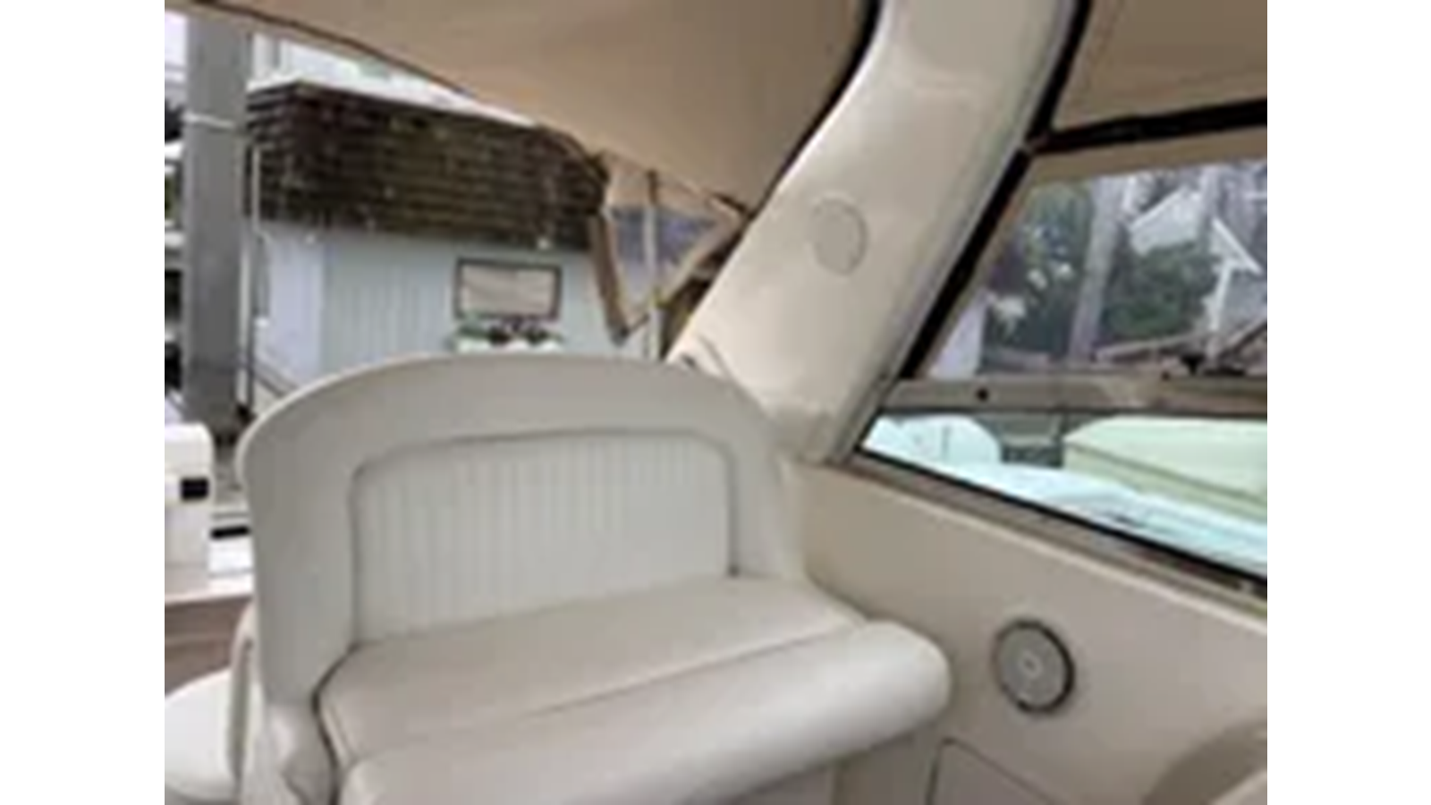 The Sea Ray 340 Amberjack, perfect for fishing or cruising, features a wide beam and large cockpit. Several passengers can sit comfortably in the cockpit during cruising.