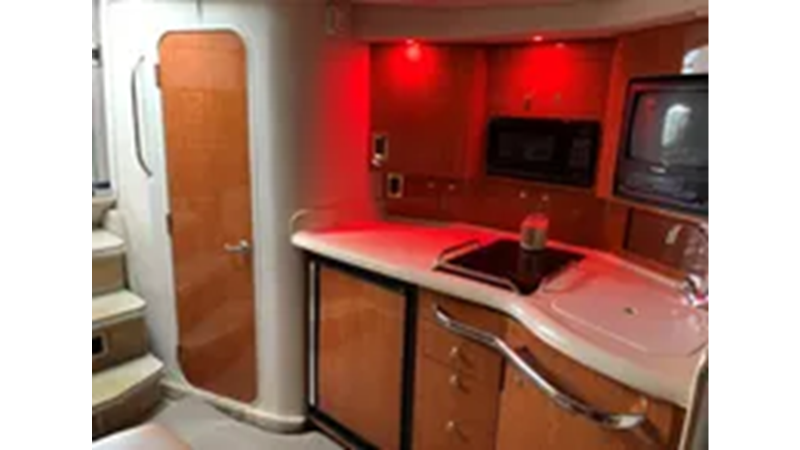 2001 Sea Ray 340 Amberjack. Features Twin fresh water cooled MerCruiser 8.1-litre Horizon 370-hp Gas Engine's with 1008 original hours. Notable features include: Air-Conditioning & Heat, Head (Vacuflush) w/Vanity/Sink/Shower, Windlass Anchor w/Forward Pedal-Controls, Westerbeke 7-kw Generator (752-Hours).