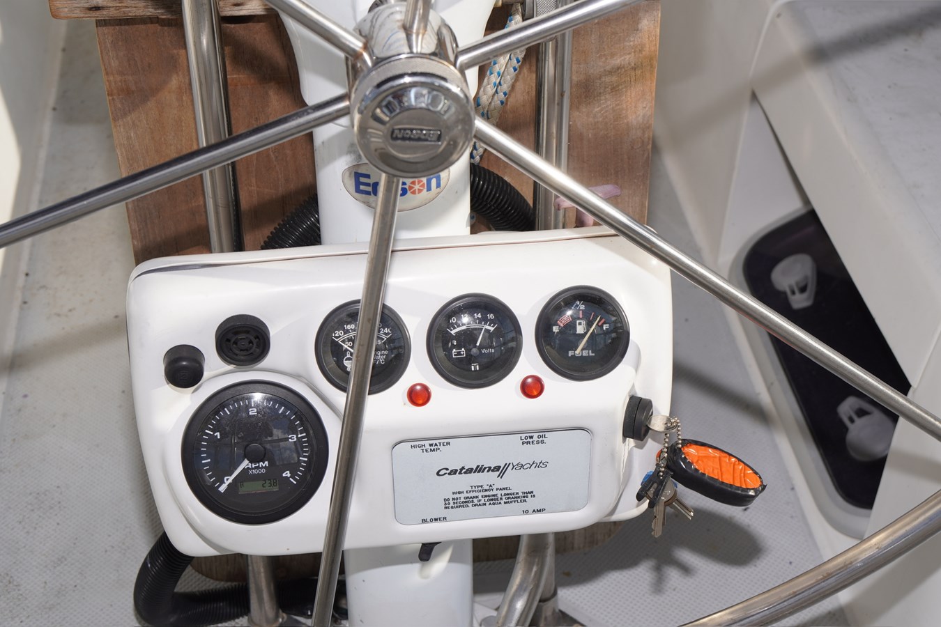 The Catalina 36 is rigged as a masthead sloop with a single spreader mast and fore-and-aft lower shrouds—a setup that balances performance with ease of use, ideal for coastal cruising or longer adventures. With her DUTCHMAN system her main sail is a breeze to handle. Roller furling on her JIB also ensures easy sail handling by a couple or a single hander as everything is riggd to the cockpit.