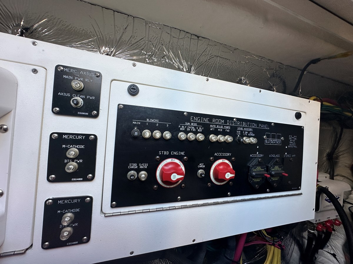 "LUX LIFE" is powered by Low Hour Twin Mercruiser 8.2 MAG H.O. engines with Bravo SeaCore drives ensuring a smooth and efficient ride. The Joystick control provides easy maneuverability in close quarters. Also equipped with Skyhook GPS Positioning which allows you to maintain your position regardless of wind or current. The helm station is equipped with the latest navigation and control systems, providing the captain with utmost confidence and ease of operation.