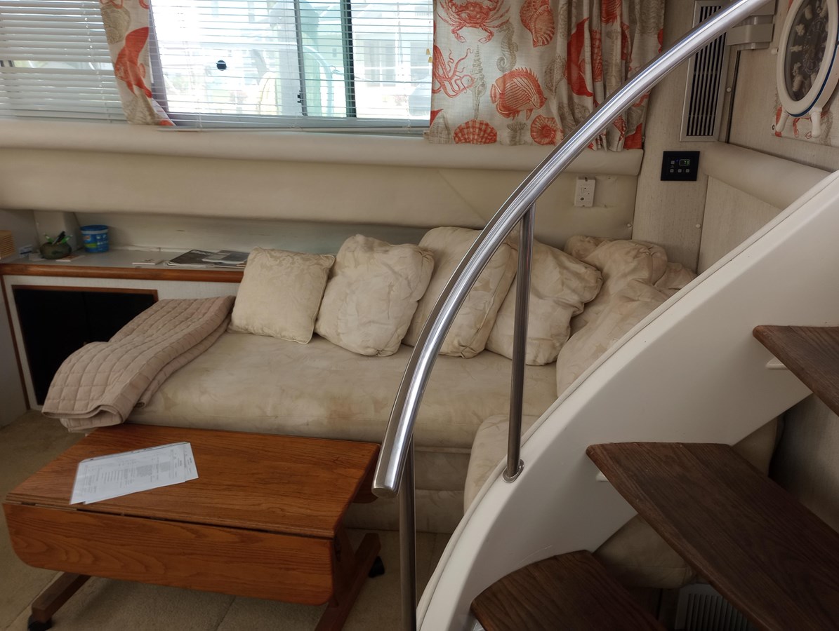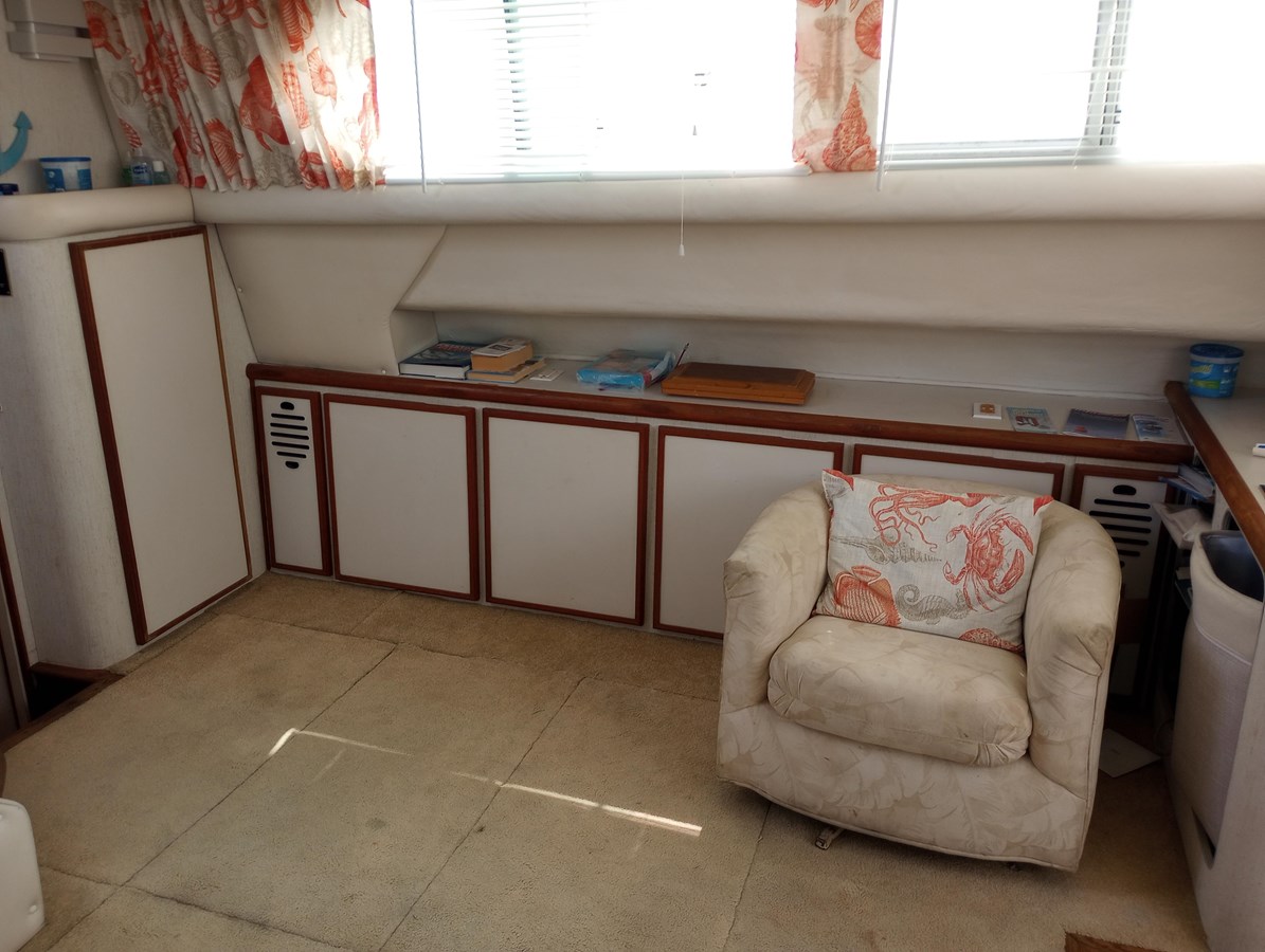 Spacious motor yacht with twin 375HP 3208 Caterpillars and a 10KW Westerbeke generator. Included is a dinghy and a 15HP Yamaha outboard with a custom made electric lift dinghy davit.