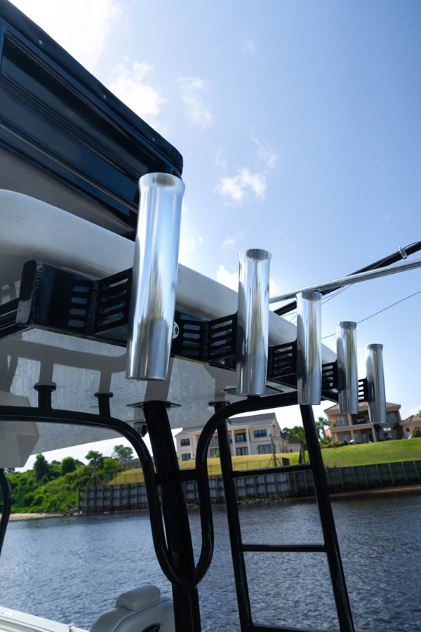 - Upgraded Stereo (JL audio sound system featuring (7) 10" subwoofers, (6) pairs of 8.8" JL Audio speakers, (1) Pair 7.7" JL audio speakers, (5) JL audio amplifiers, Custom mounted fusion remote mounted near the swim door)