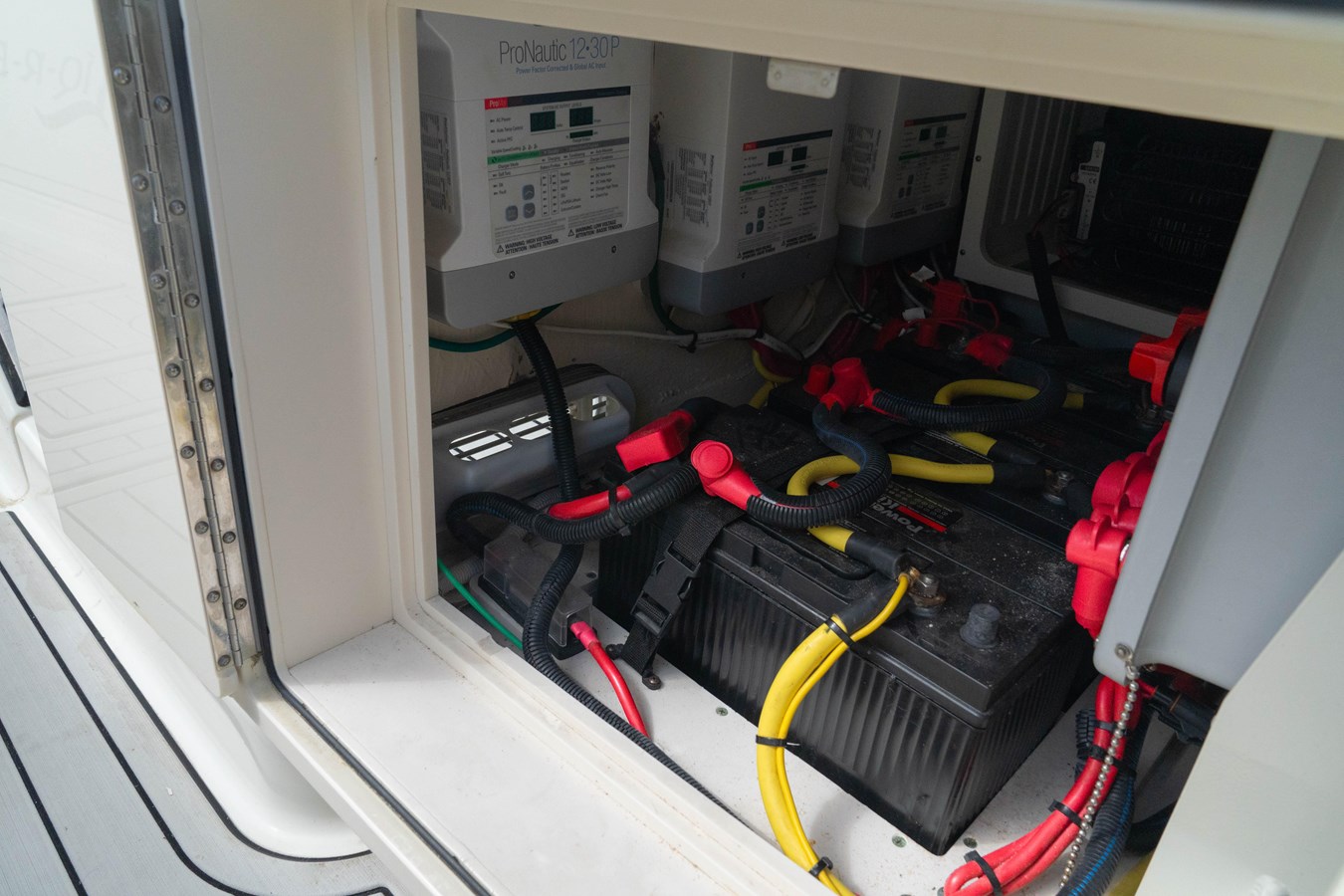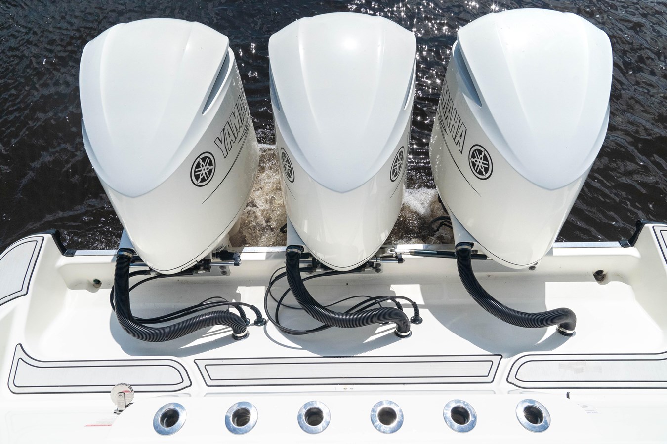 - Upgraded Stereo (JL audio sound system featuring (7) 10" subwoofers, (6) pairs of 8.8" JL Audio speakers, (1) Pair 7.7" JL audio speakers, (5) JL audio amplifiers, Custom mounted fusion remote mounted near the swim door)