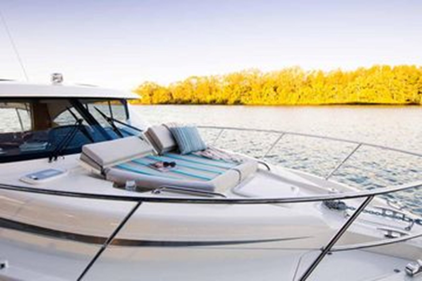 Another feature new to the Riviera flybridge and SUV collections is raised bulwarks on the side decks. The raised bulwarks, which are up to four inches in height from the deck, provide an additional level of security when moving forward or aft along the side decks.