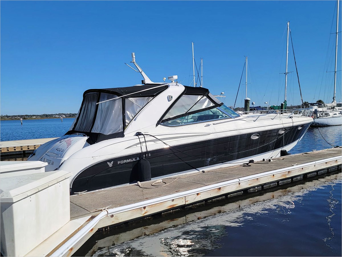 The 2005 Formula 400 SS epitomizes high-performance luxury on the water, blending raw power and sleek design in one formidable express cruiser. With its FAS3Tech hull offering a stable and dry ride, this 40-foot marvel delivers top-tier agility and a thrilling top speed, making it equally exhilarating for day cruising or extended weekends. Beneath the flawlessly finish lies a meticulously crafted cockpit and cabin, featuring plush Ultraleather lounges, a fully equipped galley, reverse-cycle air conditioning, and advanced navigation electronics. The 400 SS ensures effortless handling and convenience, while the expansive swim platform, U-shaped aft lounge, and luxurious cabin accommodations provide an uncompromising blend of performance and comfort that definitively sets the Formula 400 SS apart from other vessels in its class. Don't miss the sale on this 40-foot Performance Express Cruiser.