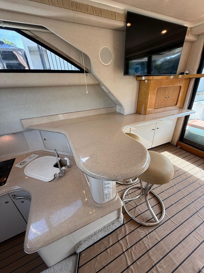 Originally built for a Sea Ray executive, no expense was spared in its construction. The quality is immediately evident when you step aboard. The boat spent most of its life in fresh water and was only brought to Florida last year. Since the $400K refit, the current owner has only added 100 hours to the engines.