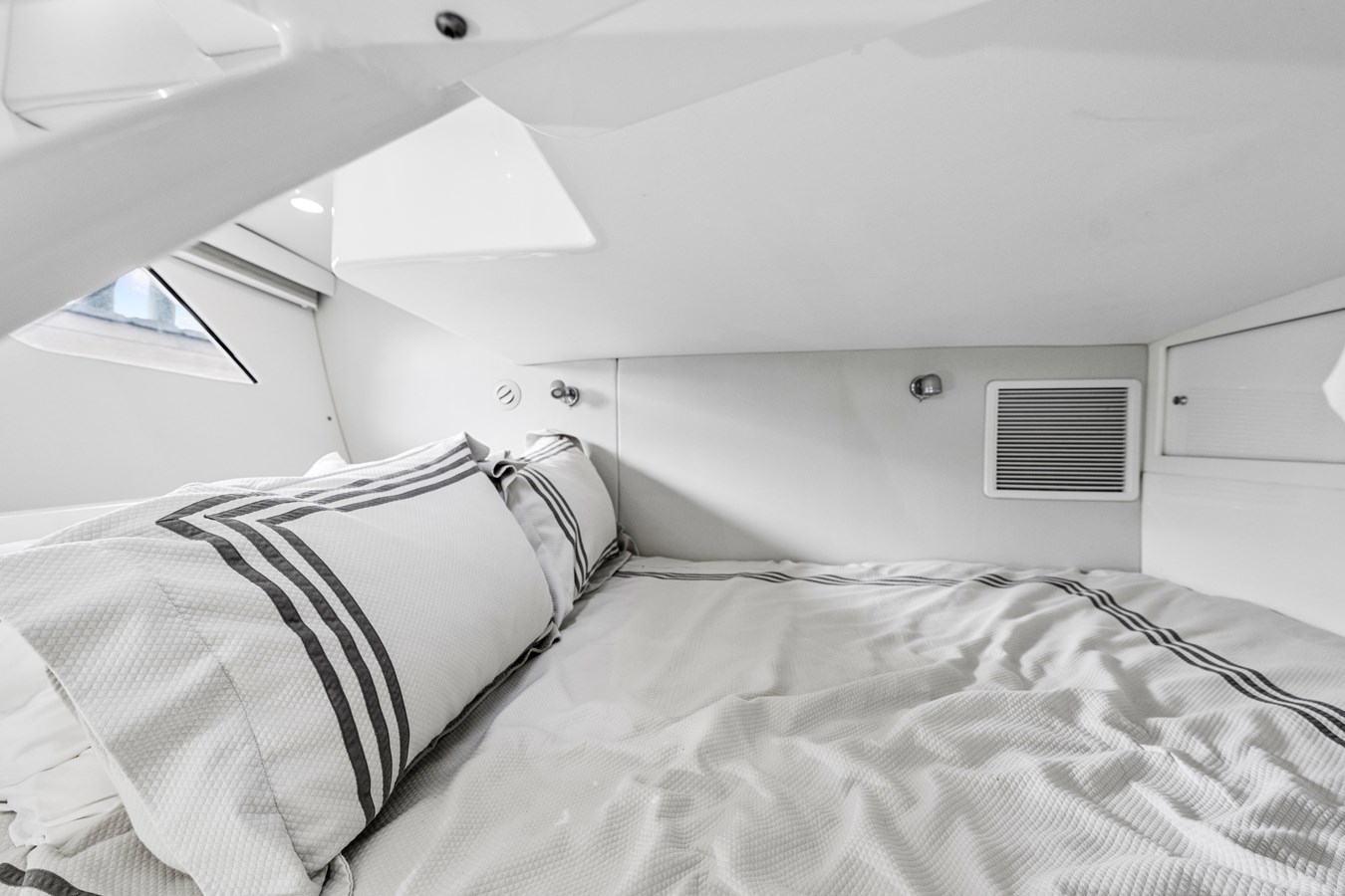 The Intrepid 407 Cuddy seamlessly blends refined luxury with true offshore performance in one sleek, head-turning package. Below deck, accommodations are thoughtfully designed for extended stays, including a private head with separate shower stall, a master berth with a queen bed and hull side windows that fill the space with natural light, and a forward cabin that easily converts into a spacious double berth. On deck, advanced construction and fabrication techniques deliver an exceptionally smooth, dry ride without sacrificing speed or handling.