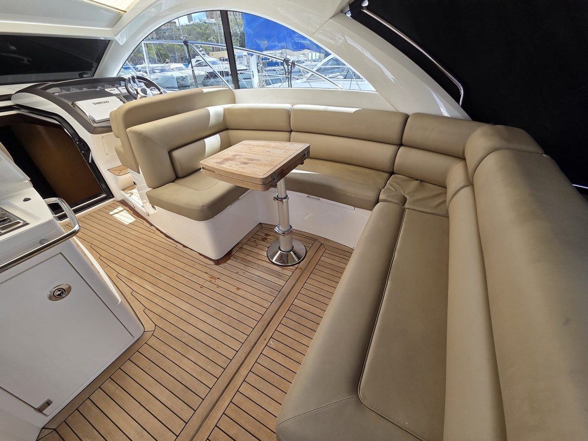-Spacious cockpit with seating and dining table