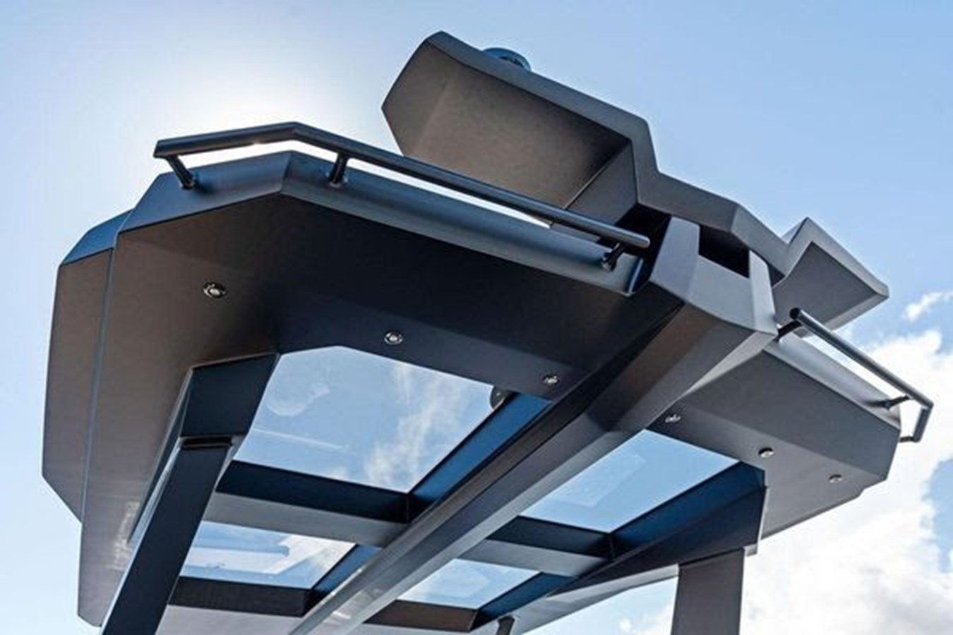 -Sun screens on carbon awnings front and stern