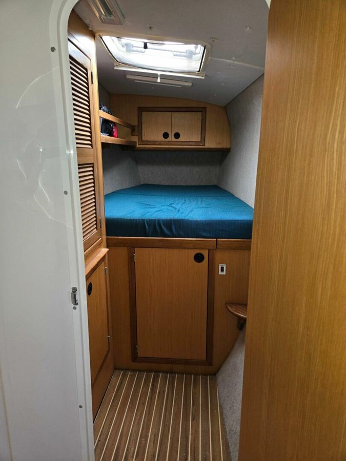 - The single berth has one opening Bomar port and a Bomar hatch, both with screens and Oceanair shades.