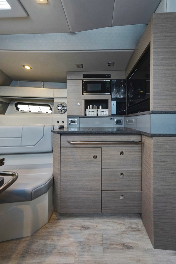 - Complete galley with concealed sink and cooktop, microwave, and blender