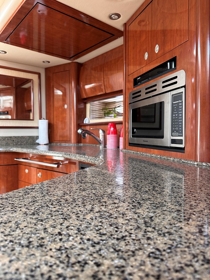 With a spacious layout above and below deck, this Sundancer offers a perfect blend of functionality and elegance. The cockpit is designed for entertaining, while the salon and staterooms below provide plush comfort and privacy.