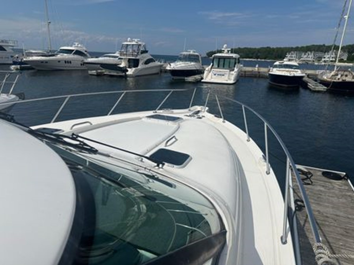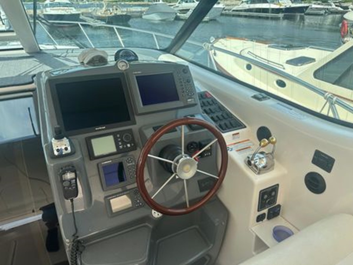 This 2007 Tiara Yachts 4300 Sovran stands out as an exceptionally clean and meticulously maintained vessel, offering unparalleled comfort and style. One of its key features is the full glass windshield, which eliminates the need for Isinglass and enhances the overall sleek design. The aft sunshade provides ample shade over the cockpit seating area, creating the perfect environment for relaxing or entertaining guests.