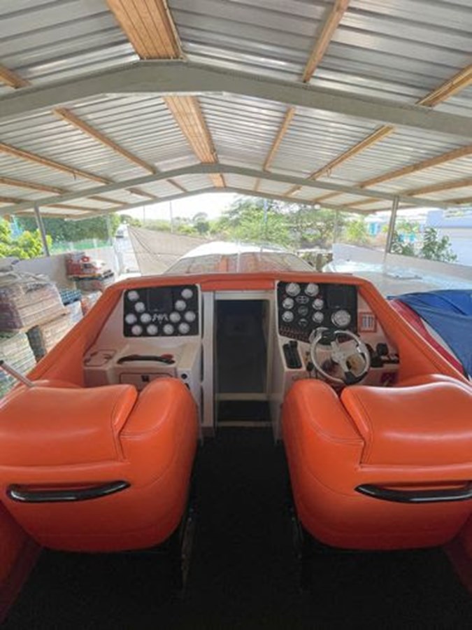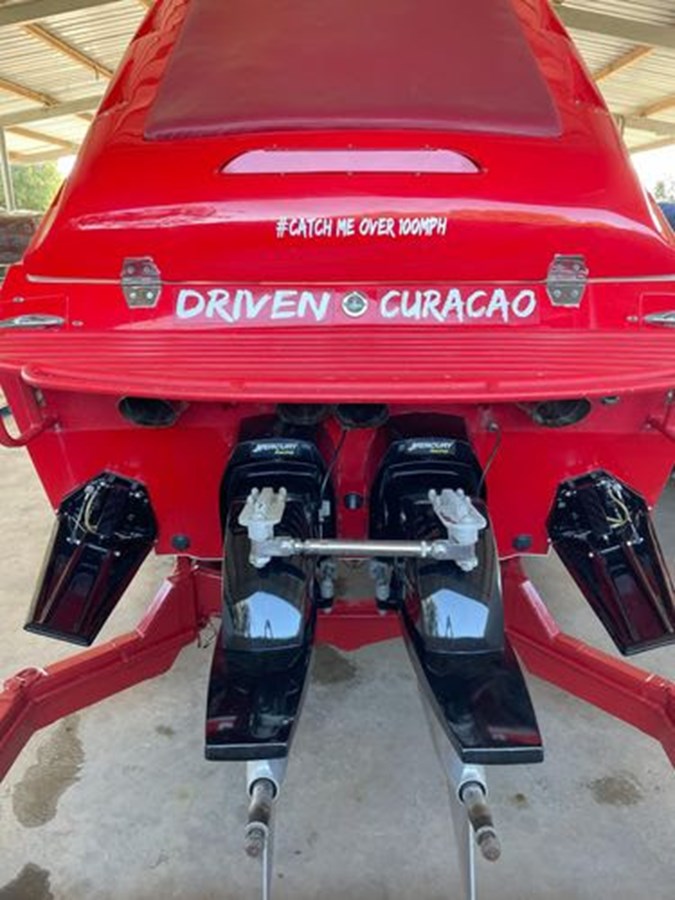 Located in Curacao cw, however can be shipped anywhere in the world. This boat has Twin 572 cu. in. 1225 HP (each) VELVET DRIVE/MERCURY 1350 TRANSMISSION M6 Racing Drives. Max speed is approx 117+ mph.