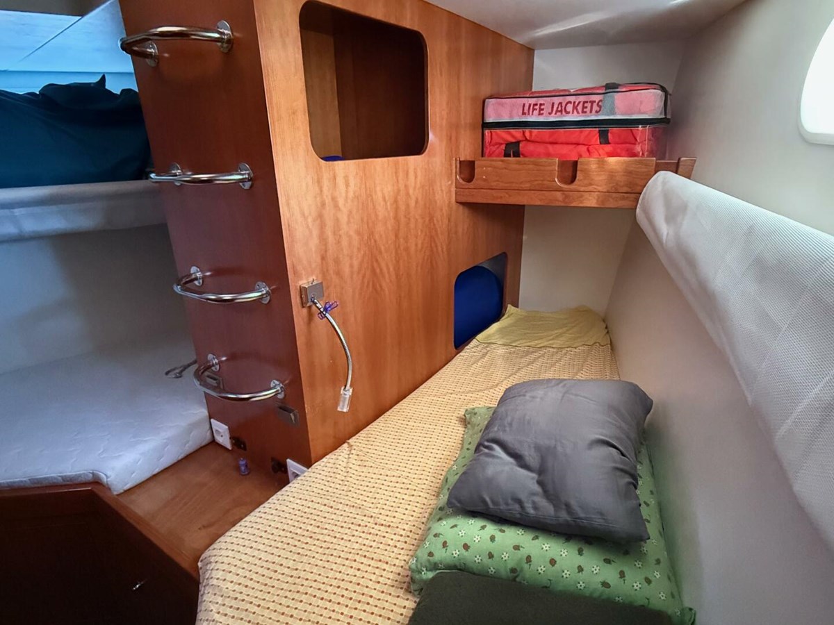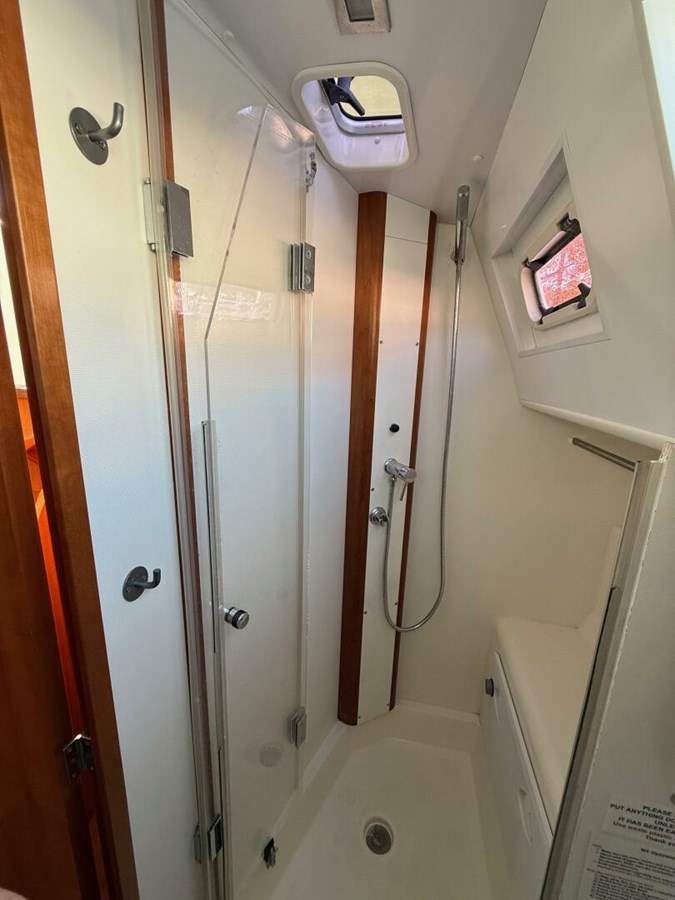 EVERMORE is hull No. 9 of this model and has three staterooms and a single head with separate shower stall.