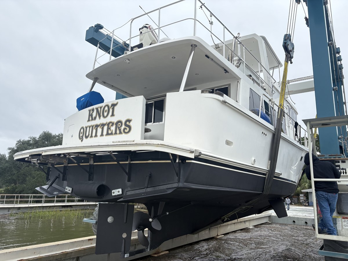 Her cozy pilothouse offers excellent visibility and easy access to the side decks through port and starboard doors, making handling simple in all weather conditions. Below, KNOT QUITTERS features a warm and inviting interior with two staterooms and two heads, each with separate stall showers, plus a convertible salon berth for additional guests. A vented washer/dryer adds convenience for extended time aboard. Designed with comfort and control in mind, she is equipped with Wesmar stabilizers along with bow and stern thrusters, making both cruising and docking smooth and stress-free. KNOT QUITTERS is an ideal trawler for extended cruising, liveaboard comfort, or coastal exploration. She is easy to view in our freshwater, covered showrooms at Atlantic Yacht Basin—and if you’re looking for the right trawler, KNOT QUITTERS is the one.