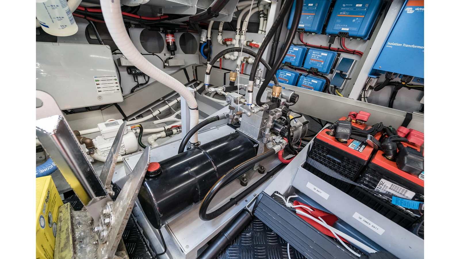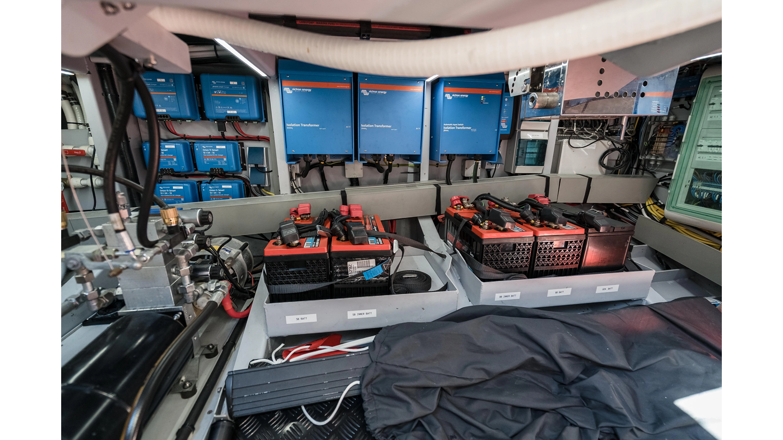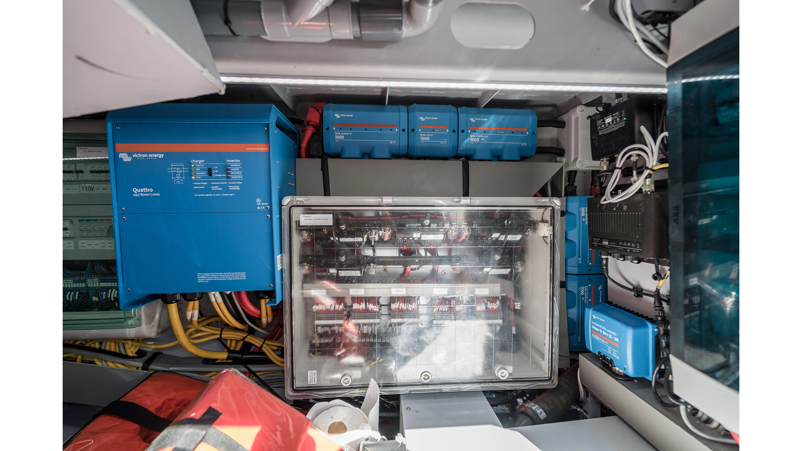 AC/DC power is facilitated by both a Northern Lights diesel generator and an extensive Victron Energy suite, which includes an Inverter for AC power without the generator. All of this is controlled via the latest EmpirBus technology.