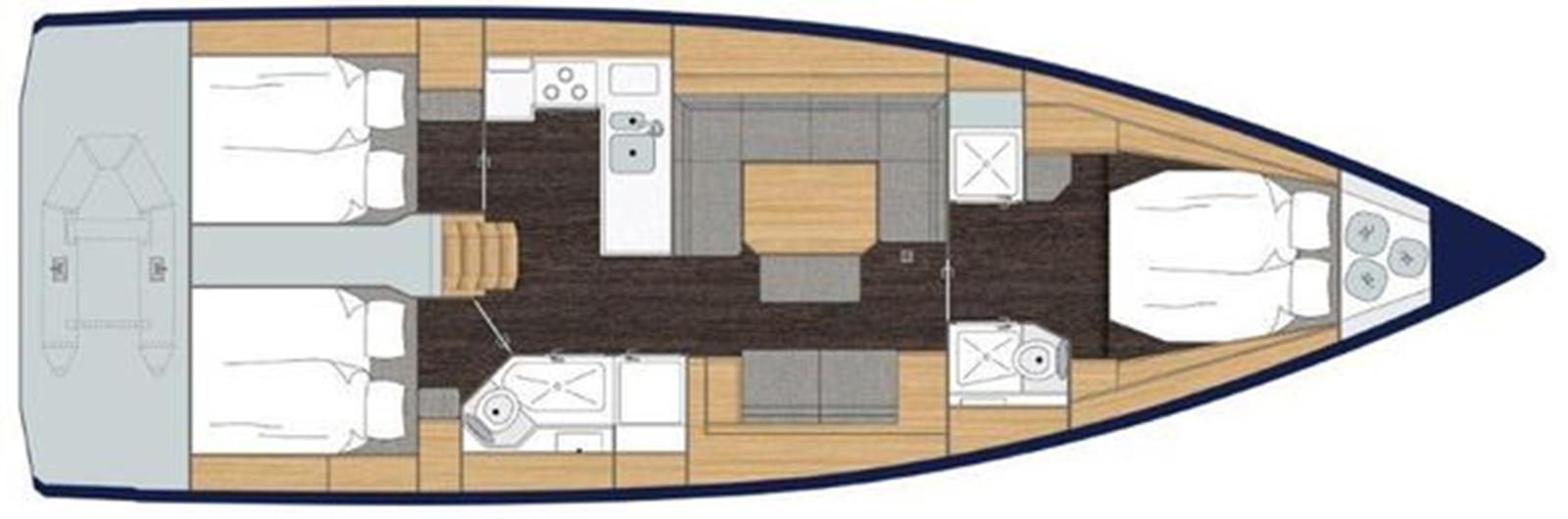 - Sail locker forward with deck access