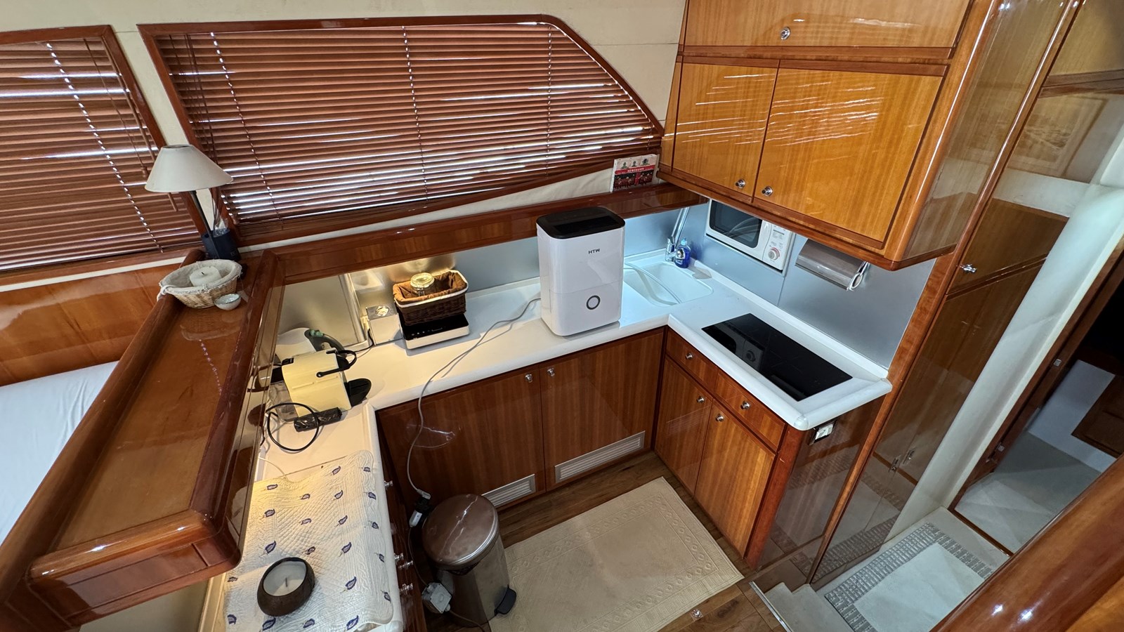 - Corian worktops in the galley and top-bar with scratch-resistant finishes