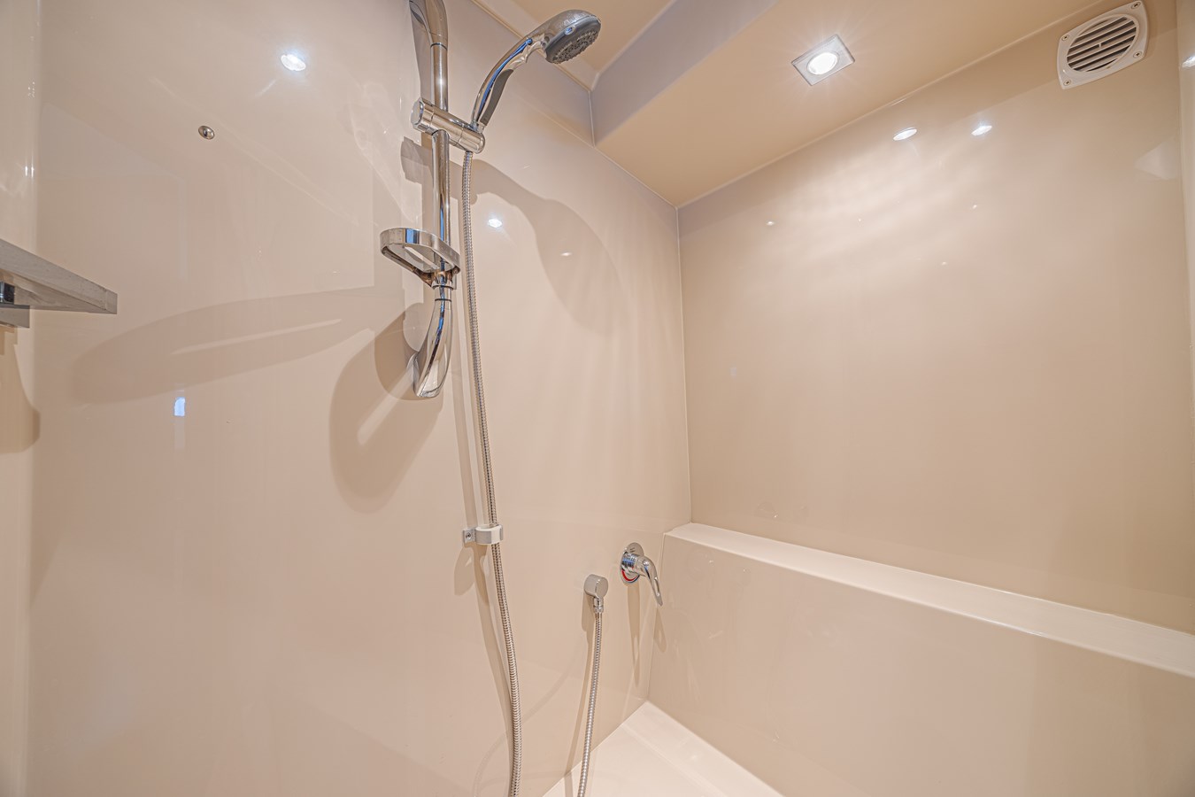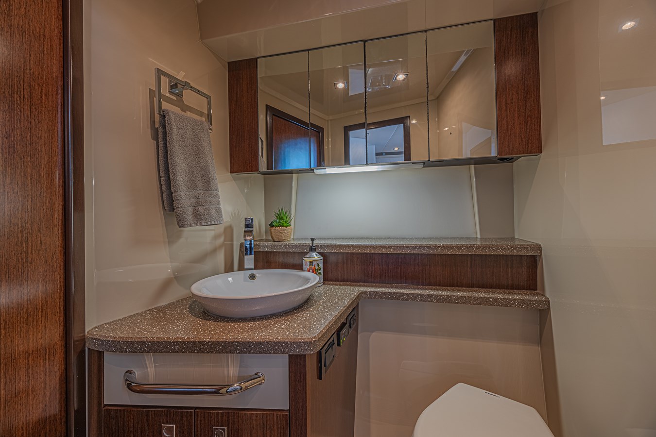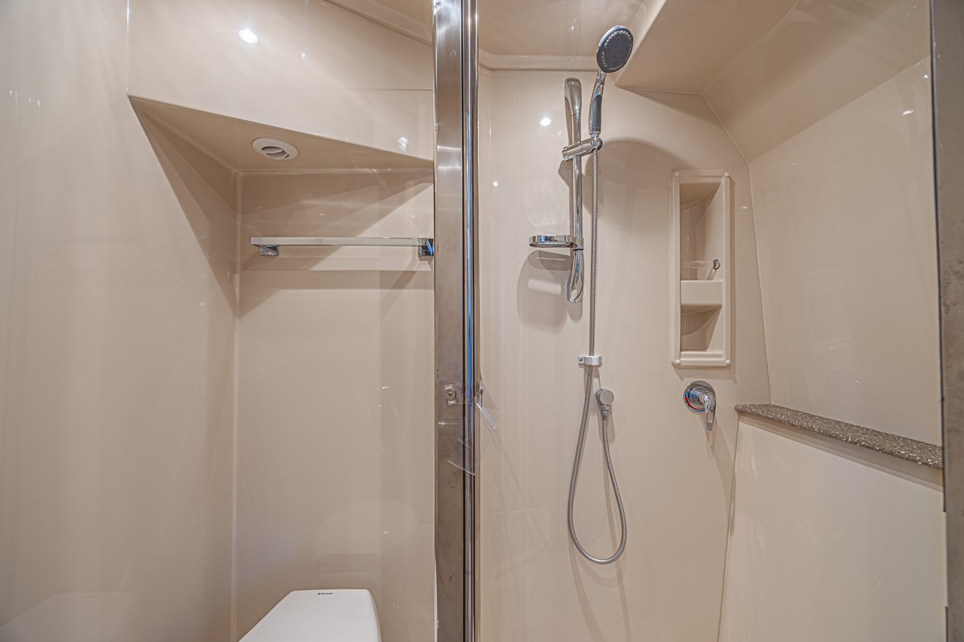 - Two full heads with VacuFlush toilets and enclosed showers.
