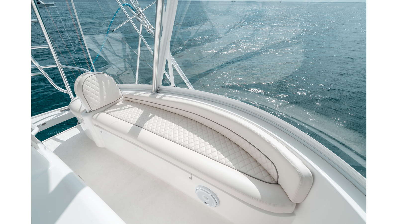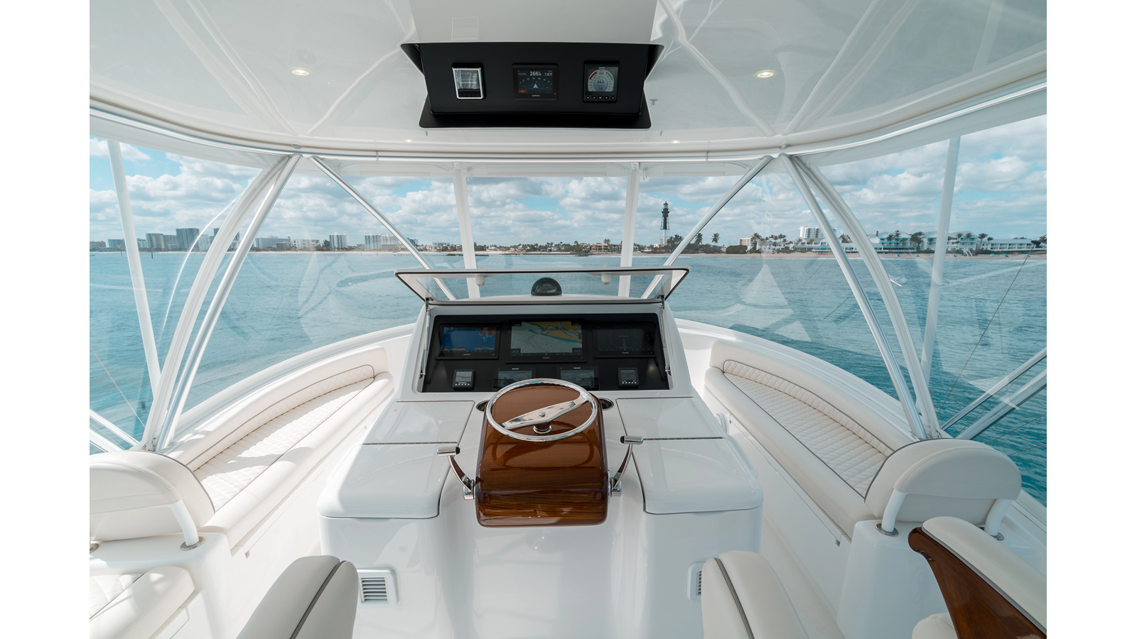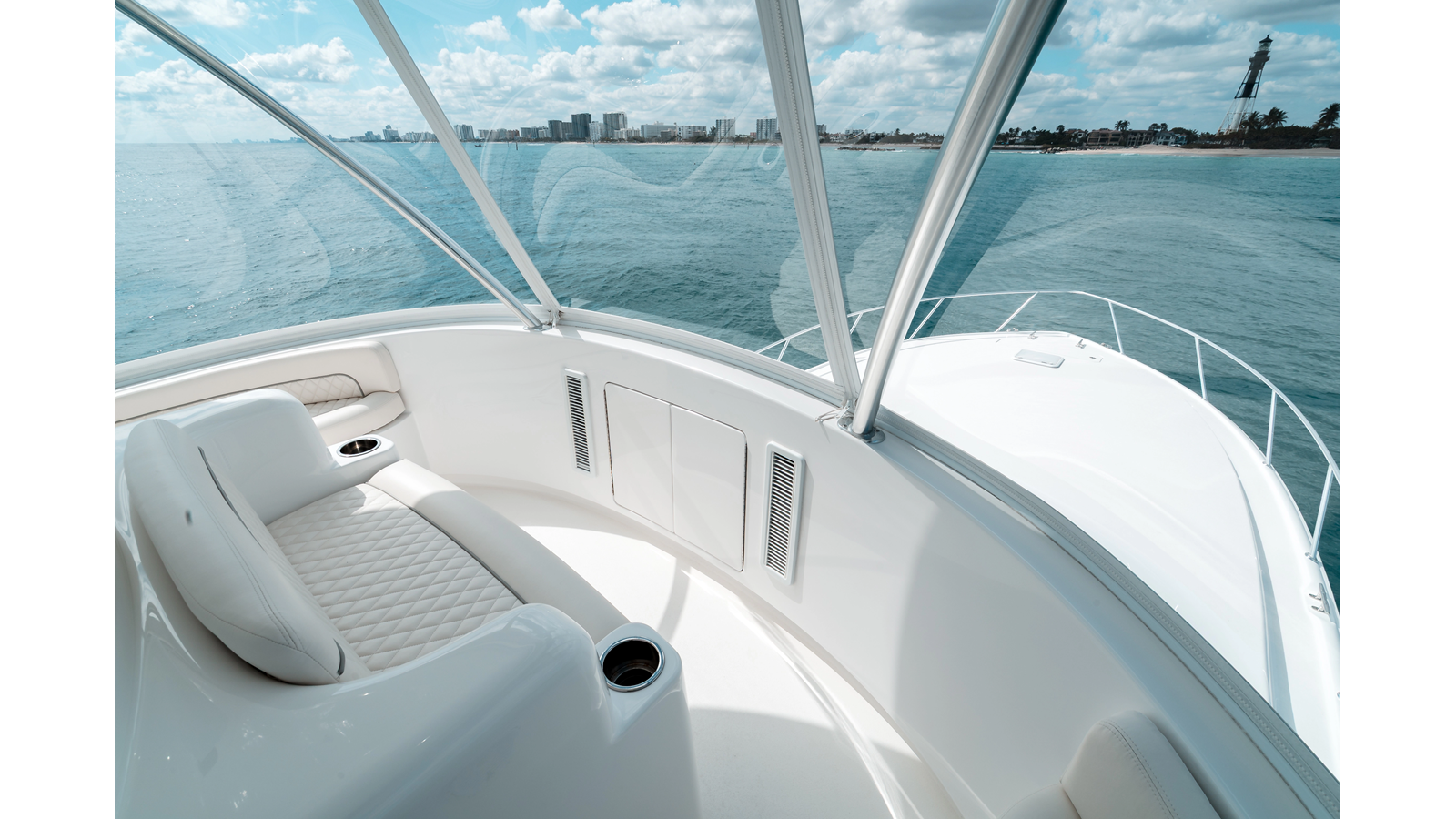 The model packs a lot in a very manageable size with a 3/2 layout, air conditioned flybridge, and great features for longer runs to fish the islands or canyons like a SeaRecovery Aquamatic Water Maker and Eskimo ice chipper.