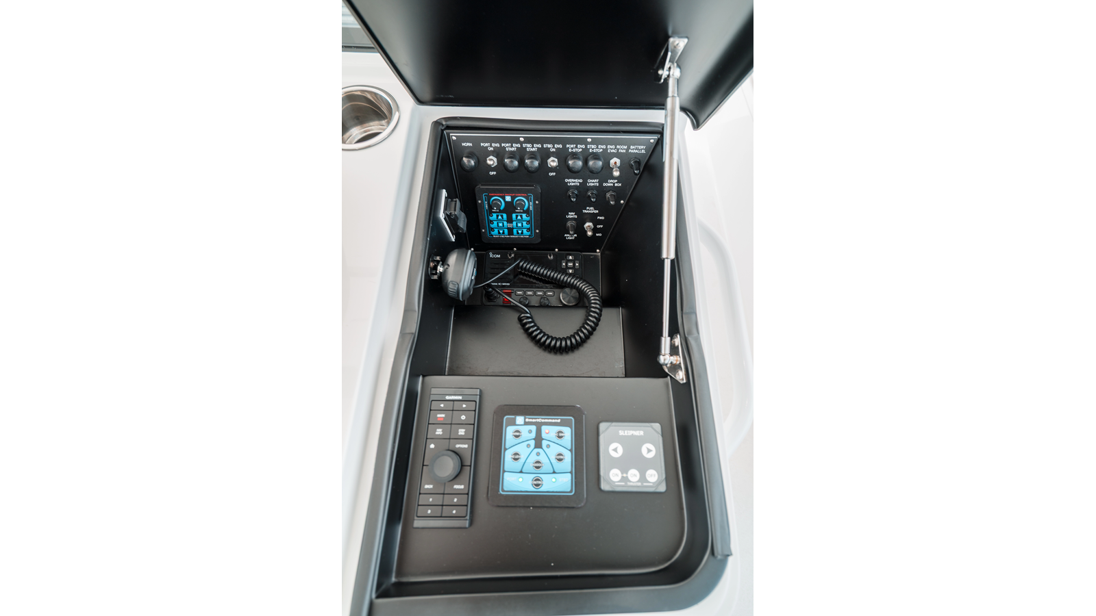 - Center Console Walk-Around Helm With Electronic Storage Raised Pod With Additional Storage Below